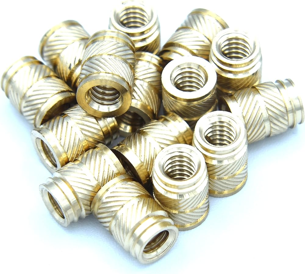 Brass Insert IUB-0420, 1/4-20 Tapered, Thru-Threaded, 9.5 mm OD, 12.7 mm Length, Heat Staking Inserts, 15pcs 3D Printed Parts, Plastic Part Assembly