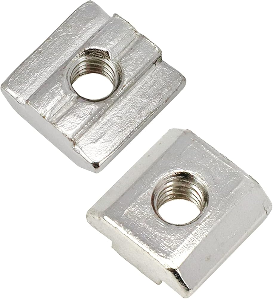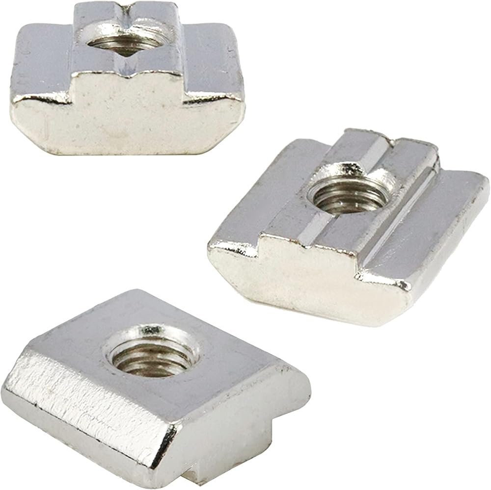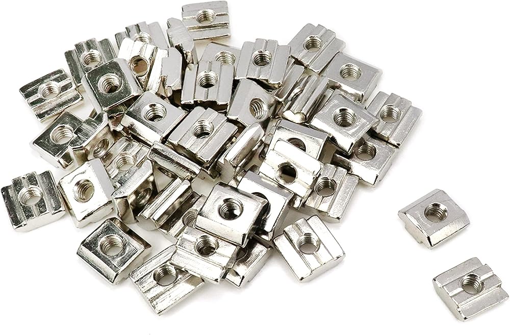 Xiaoyztan 50 قطعة M6 - ثقب الخيط 3030 سلسلة T-صواميل درجة 8.8 مطلية بالنيكل من الفولاذ الكربوني مربعة الشكل مناسبة لملف بثق الألومنيوم القياسي بفتحة T 8 مم