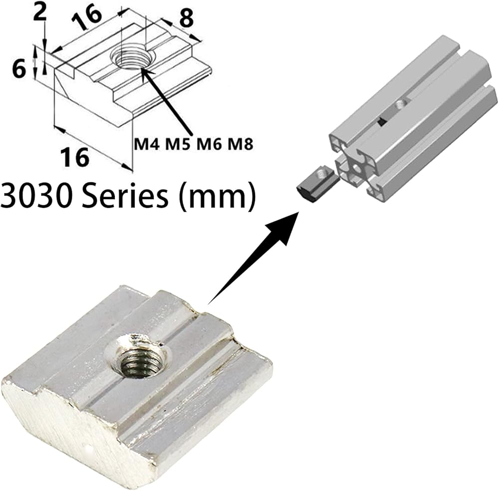 ①Sliding nuts are suitable for Aluminum Extrusion Profile 3030 series T-Slot 8mm.