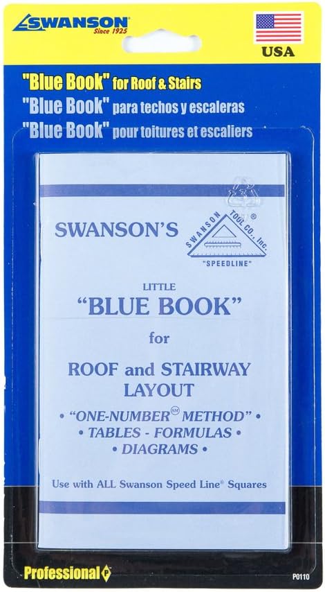The Swanson Little “Blue Book” for Roof and Stairway Layout includes detailed instructions and helpful charts showing how to measure, scribe, make cuts, and more with your Swanson Speed Square or Big 12 Speed Square. Save time determining the right measurements for your rafters by using the Swanson One-Number Method. Learn how to use the Layout Bar to measure out-of-square corners as you build stairways. The Blue Book is your number one companion and your key to becoming a true pro with your Speed Square.