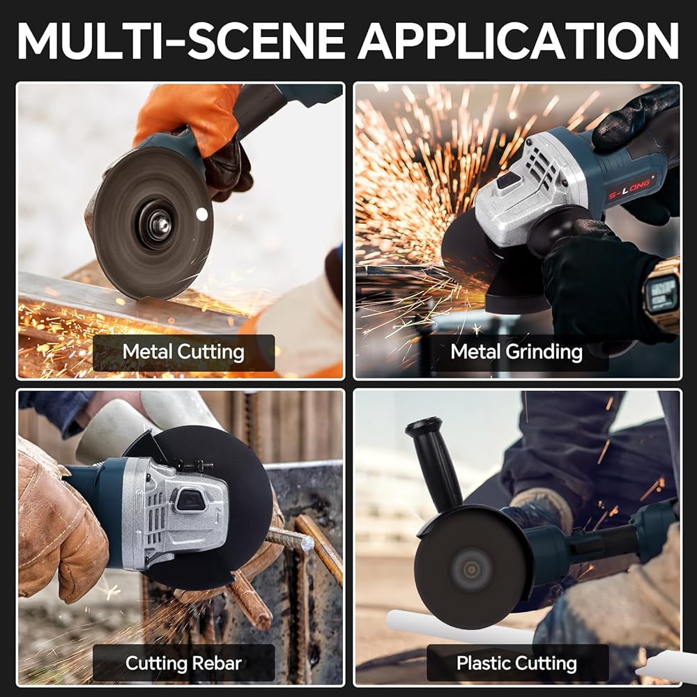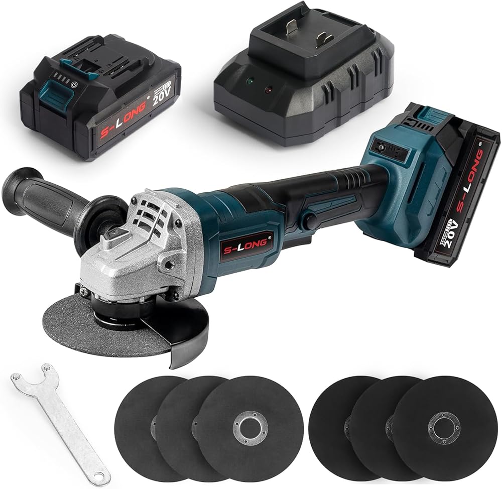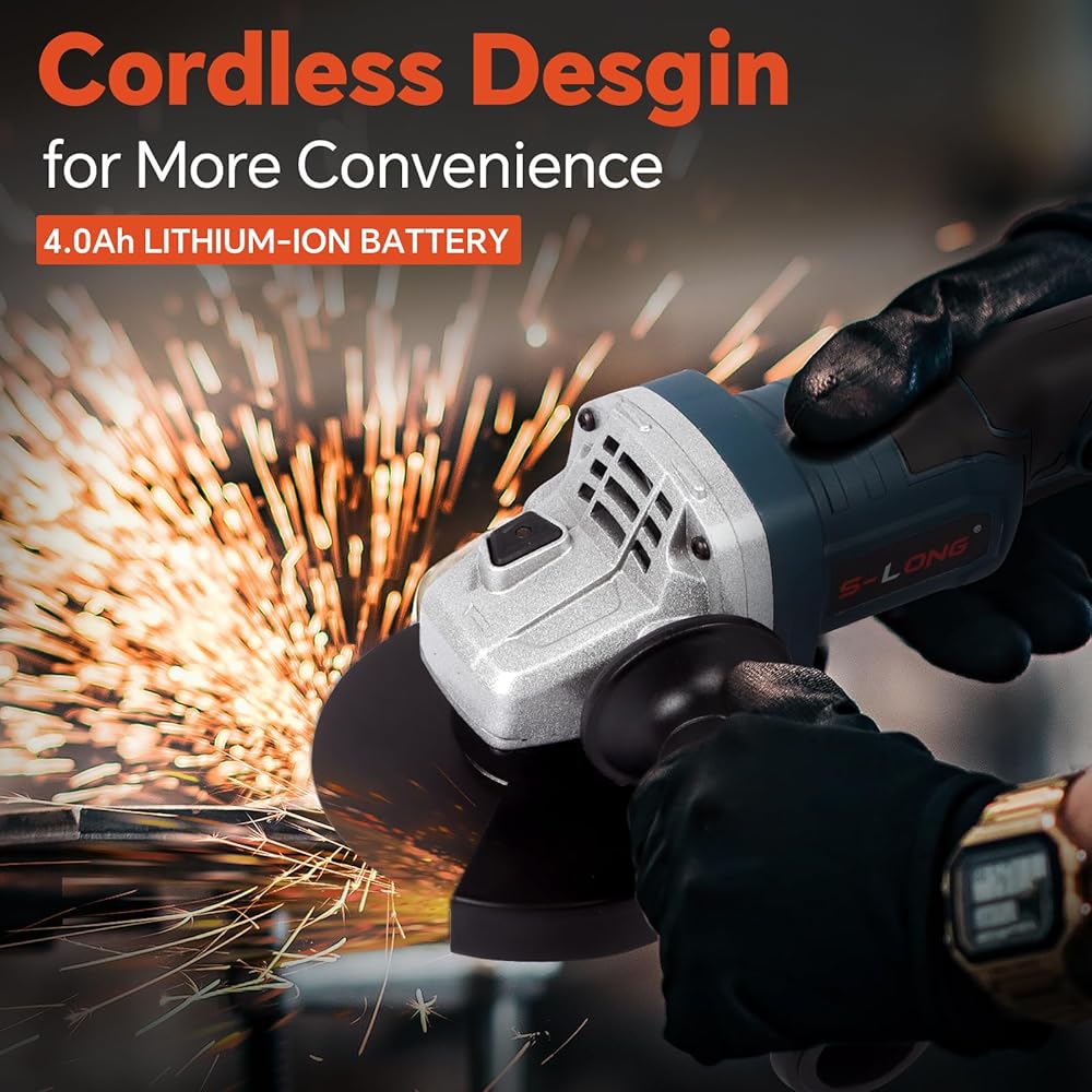 مطحنة زاوية لاسلكية S-LONG مع بطارية 4.0AH، وأدوات طحن زاوية طاقة 20 فولت مع شاحن سريع، ومطحنة معدنية بمحرك بدون فرشاة 9000 دورة في الدقيقة، وعجلات قطع 4-1/2 بوصة، وقرص رفرف للقطع