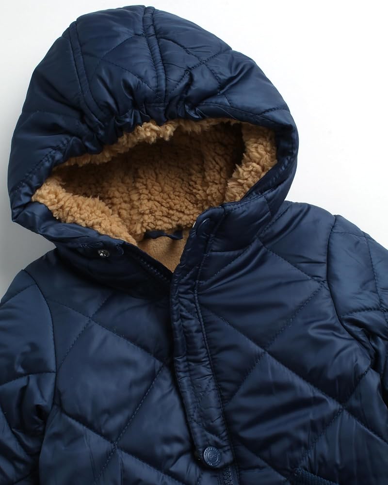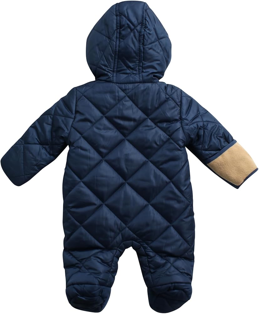 VERSATILE OUTERWEAR: From park strolls to family outings, this quilted jumpsuit is perfect for any occasion. Its functional design and plush fabric make it the ideal choice for winter adventures. Keep your baby boy comfortable and stylish all season long with this versatile outerwear essential.
