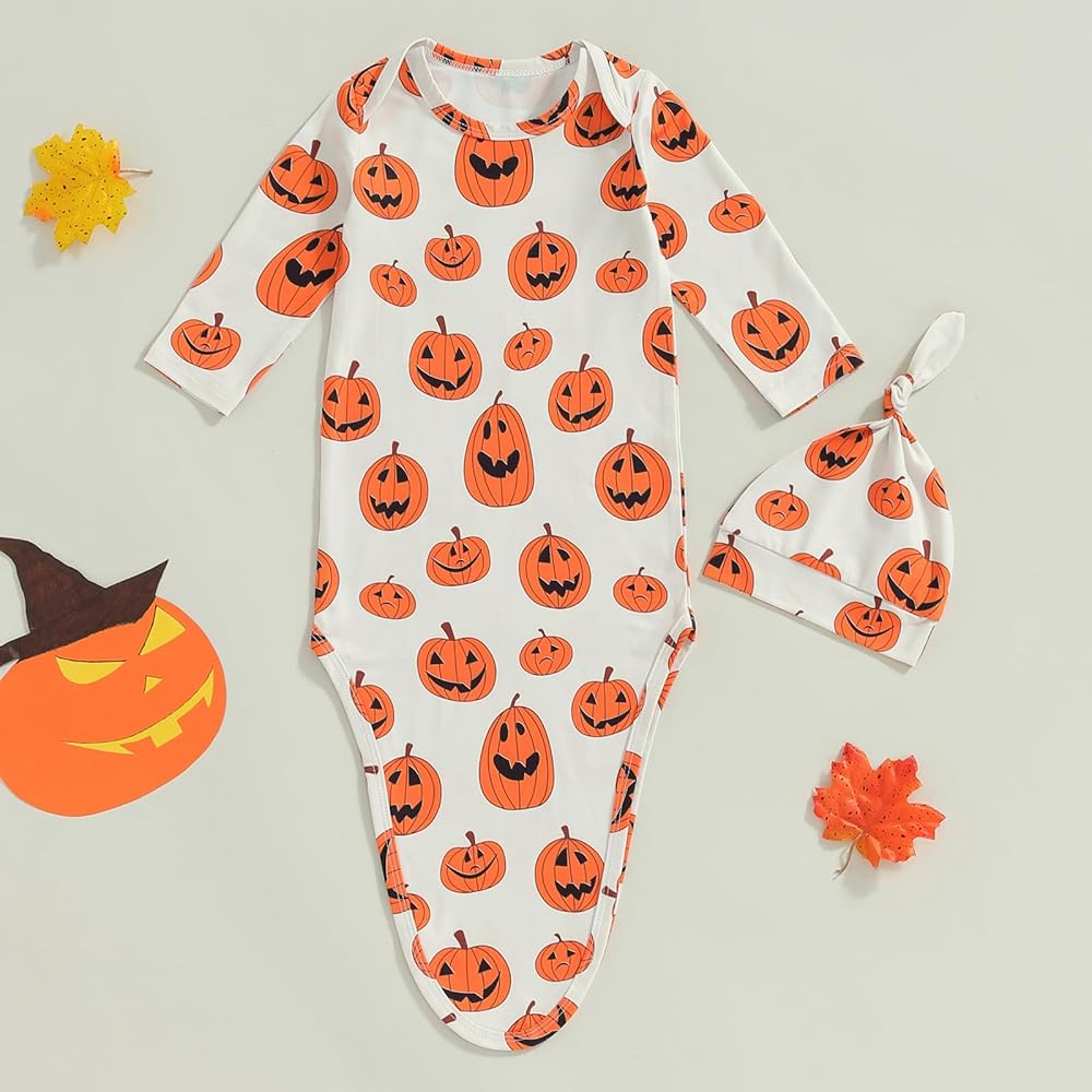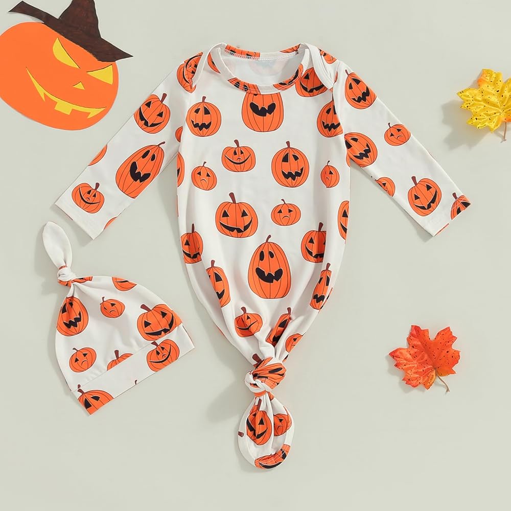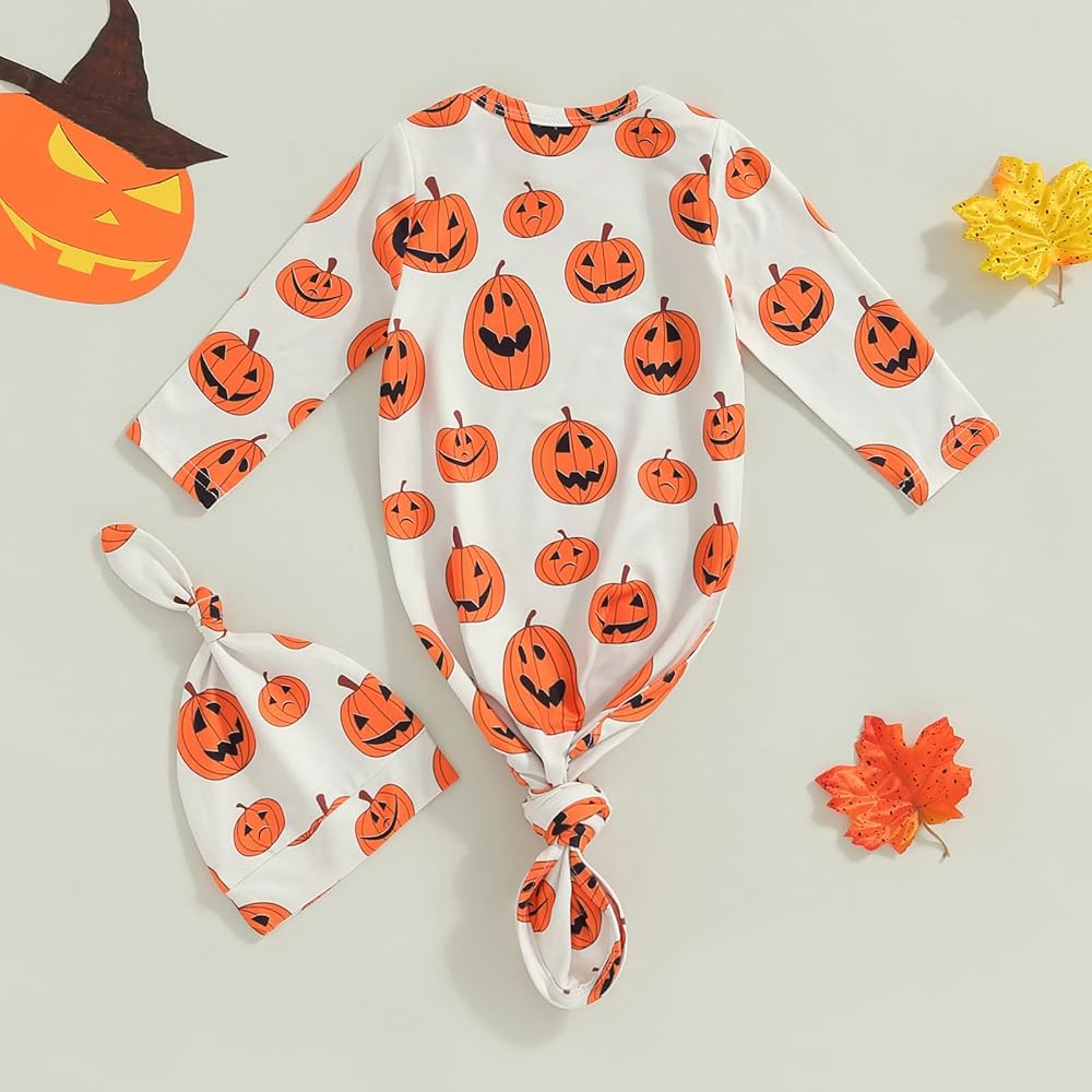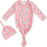 PACKAGE:1xKnotted gown+1xHat, newborn baby boy girl gown and hat set newborn baby essentials must haves items, your babies will love it at first sight