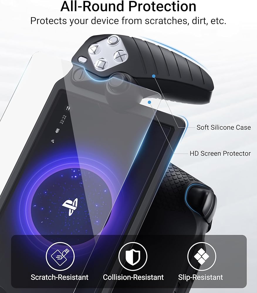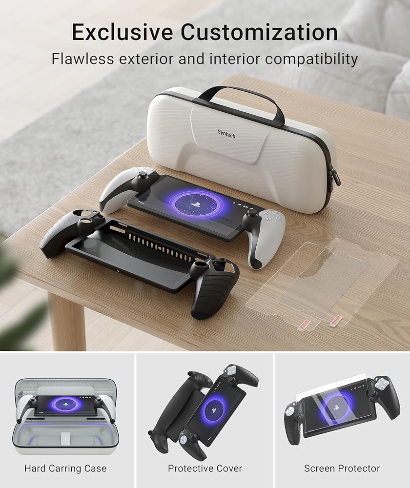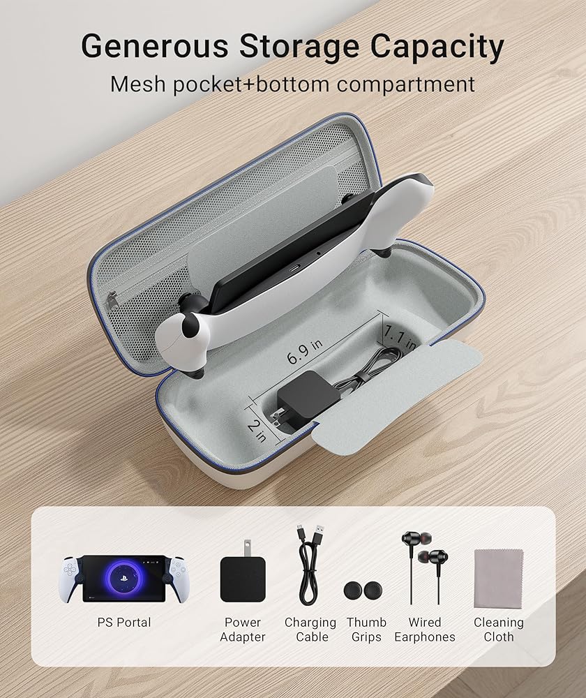 جودة جديرة بالثقة: تجمع ملحقات حزمة PS Portal بين حقيبة حمل EVA وسحابات SBS المتينة، وغطاء سيليكون صديق للبشرة، وواقي شاشة صلابة 9H مكون من عبوتين. مدعومًا بالتزامنا بالجودة، نقدم فترة خالية من القلق لمدة 3 أشهر، يكملها دعم العملاء المخصص.