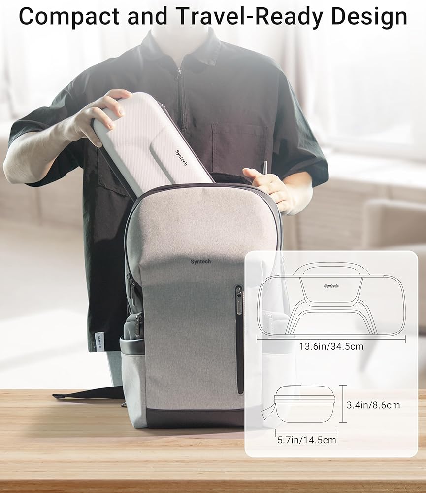 رفيق السفر المحمول: تم تصميم حقيبة Syntech المحمولة صغيرة الحجم ولكنها واسعة لتخزين ملحقات PS Portal والسفر المريح. يتميز بجزء سفلي مخصص وجيوب شبكية بسحاب، ويتسع للملحقات مثل الشاحن والكابل وقبضة الإبهام وسماعات الرأس السلكية وما إلى ذلك. ملاحظة: قد لا يتوافق شاحن الطاقة UK وسماعات الأذن اللاسلكية Plus Explore مع حافظة PlayStation Portal بشكل مثالي بسبب حجمها.