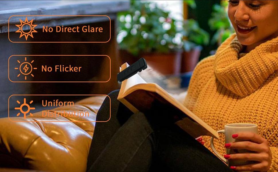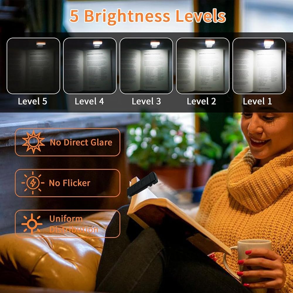 خيارات الإضاءة المخصصة لأنشطتك: يوفر ضوء القراءة الخاص بنا مجموعة مختارة من 3 أوضاع إضاءة و5 مستويات سطوع مختلفة، مما يضمن الراحة المثالية لعينيك. اختر ضوءًا ساطعًا للقراءة الغامرة في الظلام، وضوءًا لطيفًا للقراءة مع مصادر الإضاءة الأخرى، ووضعًا كهرمانيًا للاستمتاع بالقراءة دون إزعاجات في المساحات المشتركة.