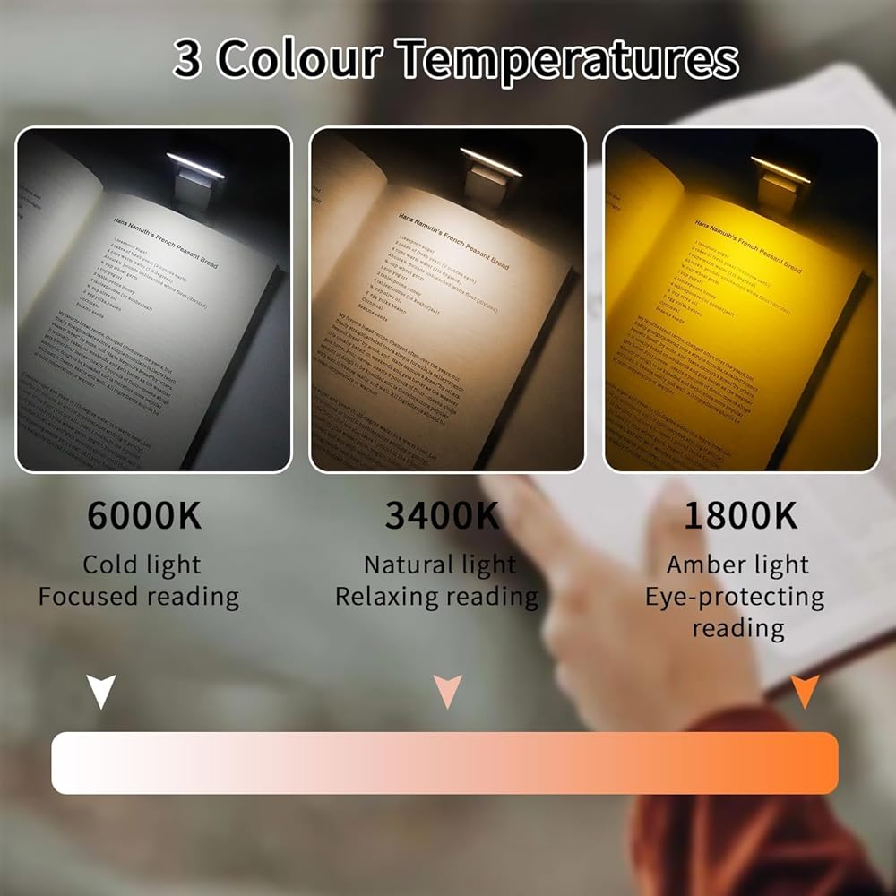 مصباح قراءة الكتب QUMOX بجانب السرير، ضوء قراءة LED محمول مع مشبك، 3 ألوان كهرمانية و5 مستويات سطوع قابلة للتعديل، مصباح قراءة USB قابل لإعادة الشحن لمحبي الكتب