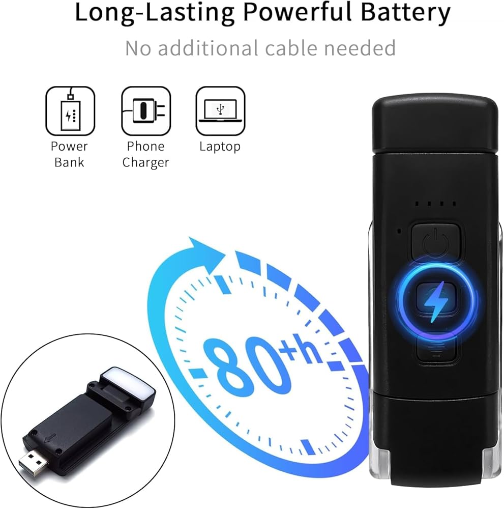 80 ساعة من عمر البطارية لأسابيع من القراءة: لا مزيد من القلق بشأن عمر البطارية أثناء الغوص في قصصك المفضلة. تم تصميم مصباح القراءة الخاص بنا لتحقيق الكفاءة، حيث يوفر ما يصل إلى 80 ساعة من الاستخدام بشحنة واحدة. بالإضافة إلى ذلك، يمكن إعادة شحنه بسهولة عبر USB، مما يضمن تجربة قراءة متواصلة.