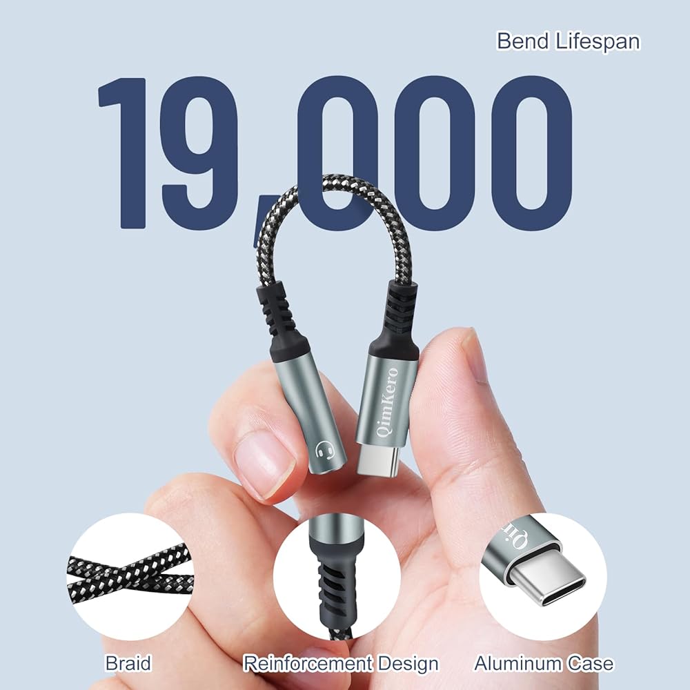توافق واسع: متوافق مع Samsung Galaxy S23 S23+ S22 S21 S20 Ultra Note 20 10، Pixel 4 3 2 XL، iPad Pro، يمكن لمحول سماعة الرأس QimKero أن يتطابق تمامًا مع أجهزتك. استمتع بالموسيقى عالية الجودة في أي وقت وفي أي مكان.