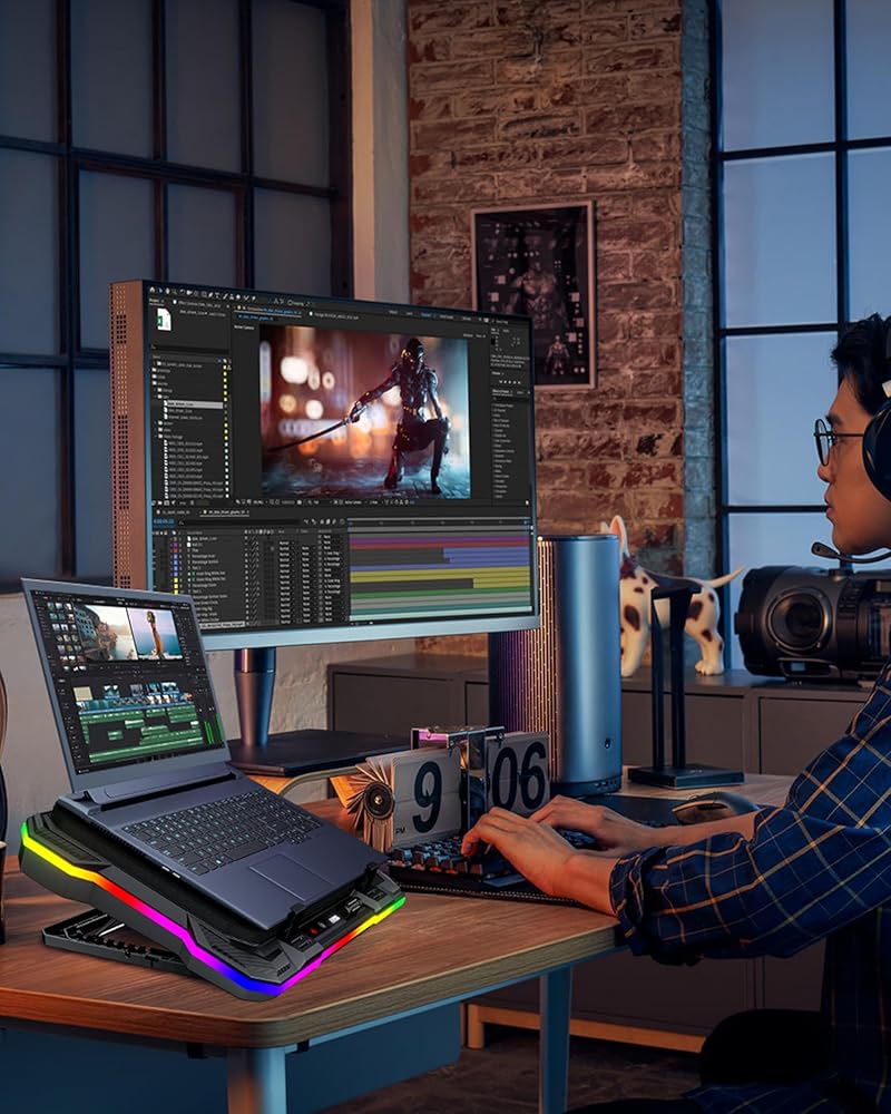 [مستويات ضوضاء متعددة السيناريوهات] تصدر وسادة تبريد الكمبيوتر المحمول والمروحة الخارجية ضوضاء مذهلة. نقترح استخدام 600-1100 دورة في الدقيقة مع ضوضاء منخفضة للاستخدام العادي، والضبط على 1200-1700 دورة في الدقيقة عند تحرير مقاطع الفيديو، و1800-2800 دورة في الدقيقة للألعاب المكثفة