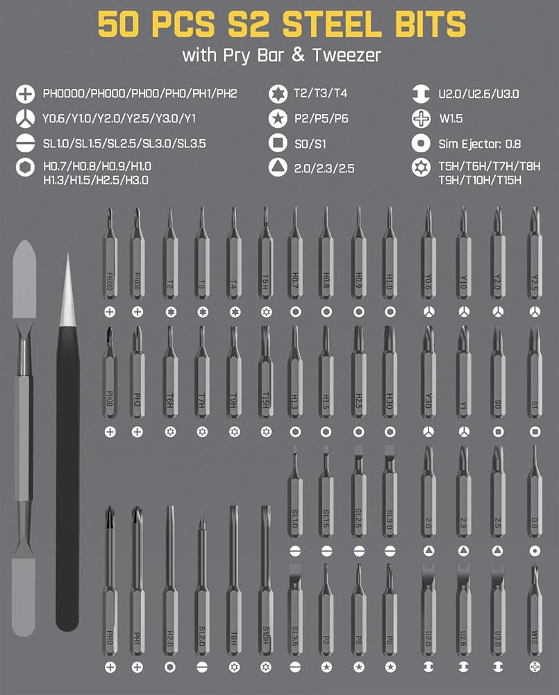 【لا تترك أي برغي غير مقلوب مع لقم معدنية 50 في 1】يحتوي مفك البراغي Fanttik X5 MAX على 50 بت، وزوج واحد من الملاقط، وشريط نقب واحد في 9 أنواع. يمكنك بسهولة مواكبة جميع أنواع الصيانة اليومية مع هذا المنتج الأصلي. من Torx إلى Philips، ومن الرؤوس المسطحة إلى ما تسميه، فإن X5 MAX يغطي كل ذلك. إنه يزيد من تنوع الأعمال اليدوية والصيانة الخاصة بك من خلال تضمين مفاتيح الإصلاح وأجهزة الكمبيوتر المحمولة والهواتف المحمولة والكاميرات والطائرات بدون طيار وما إلى ذلك.