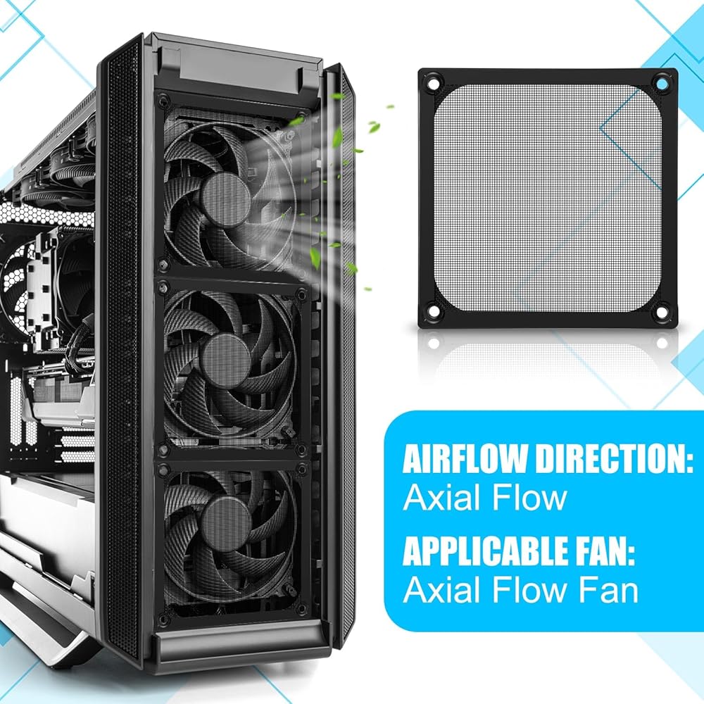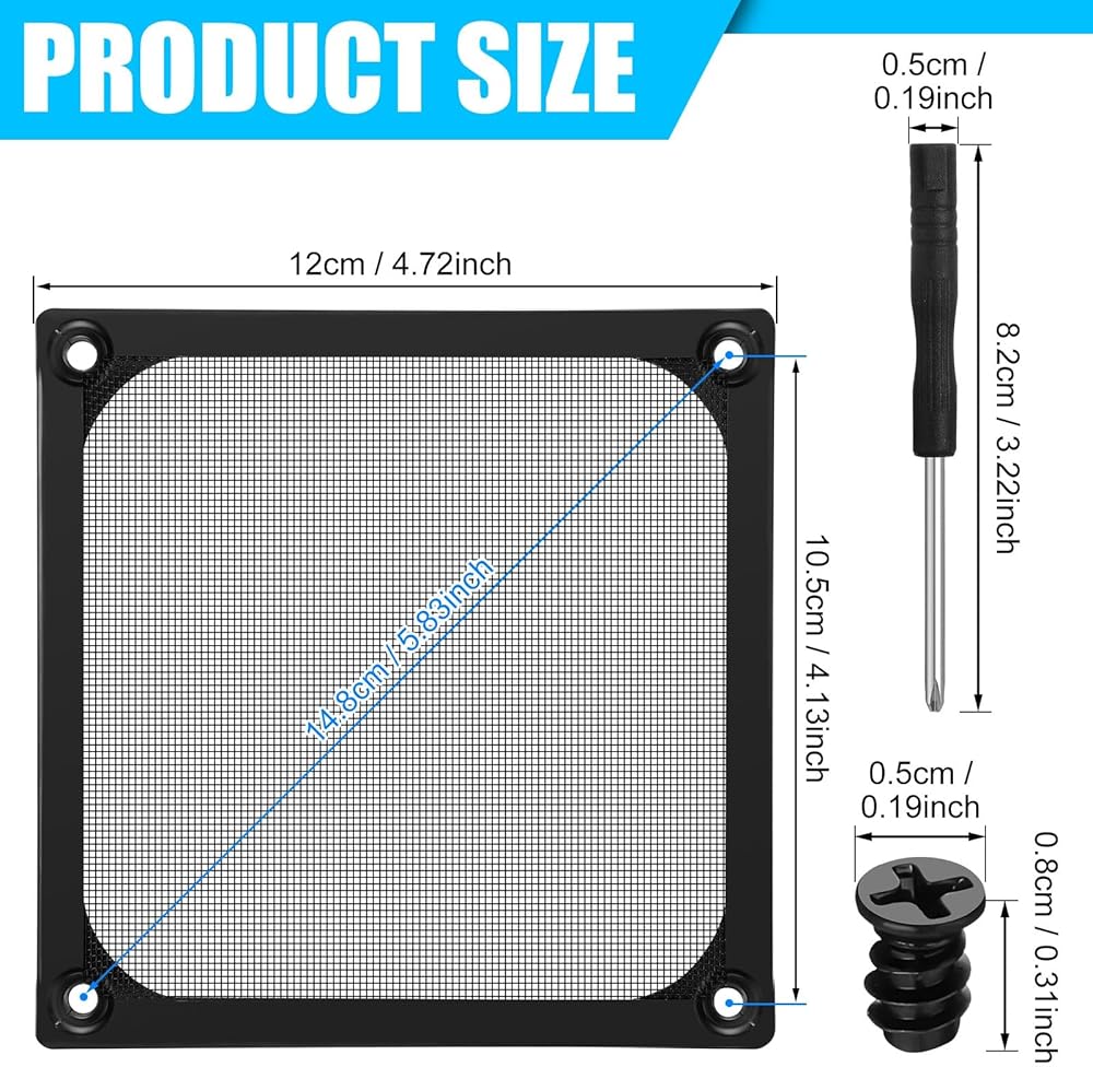 Computer fan filter grills: about 4.72 x 4.72 x 0.12 inches/ 12 x 12 x 0.3 cm