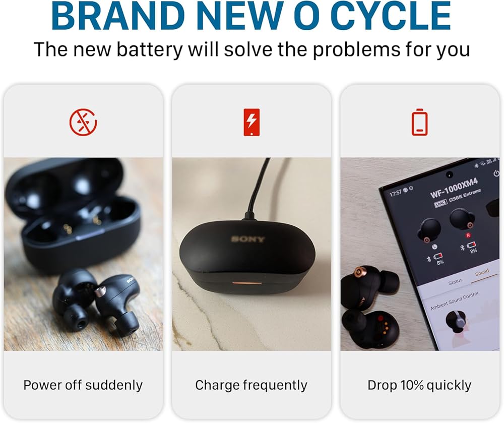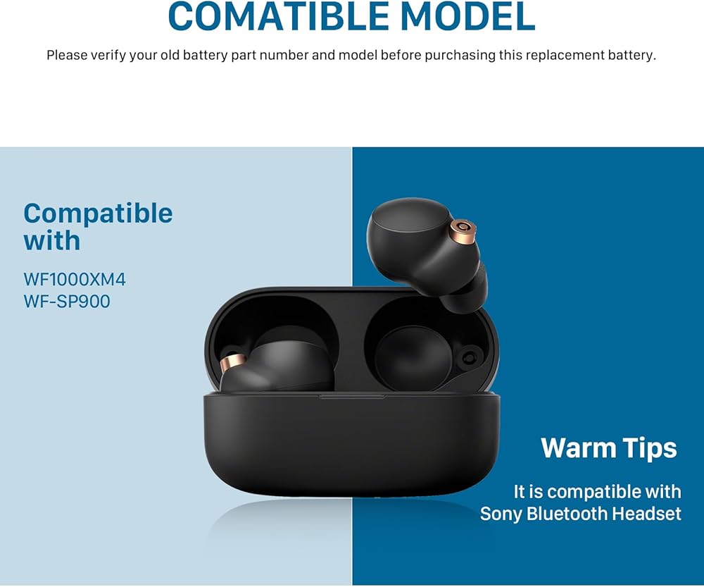 قطعتان من بطارية Z55H، [75 مللي أمبير في الساعة] (𝟮𝟬𝟮𝟰 𝗡𝗲𝘄 𝗨𝗽𝗴𝗿𝗮𝗱𝗲𝗱) متوافقة مع بطارية سماعة الرأس Sony لـ WF-1000XM4 • بطارية سماعات رأس لاسلكية تمامًا