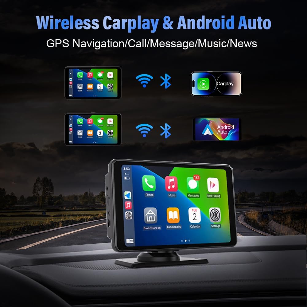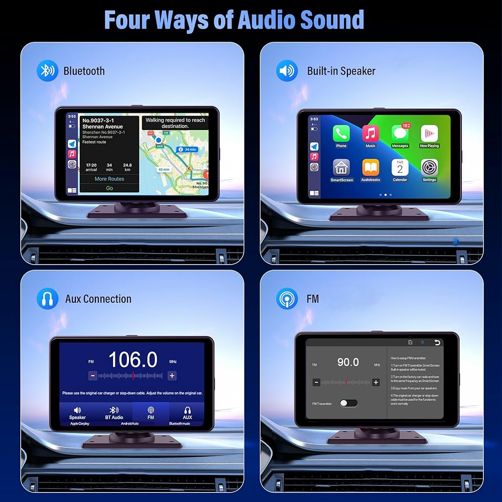 CARPLAY مع التحكم الصوتي: شاشة اللمس للسيارة Sunitec متوافقة مع Apple Carplay وشاشة Andriod Auto لإرسال الأوامر الصوتية بواسطة Siri وGoogle Voice Control حتى تتمكن من التركيز على القيادة، مناسبة لجميع المركبات، مثالية للسيارة مثل سيارات الدفع الرباعي والشاحنات والشاحنات، ميني فان، بيك اب، حافلة.