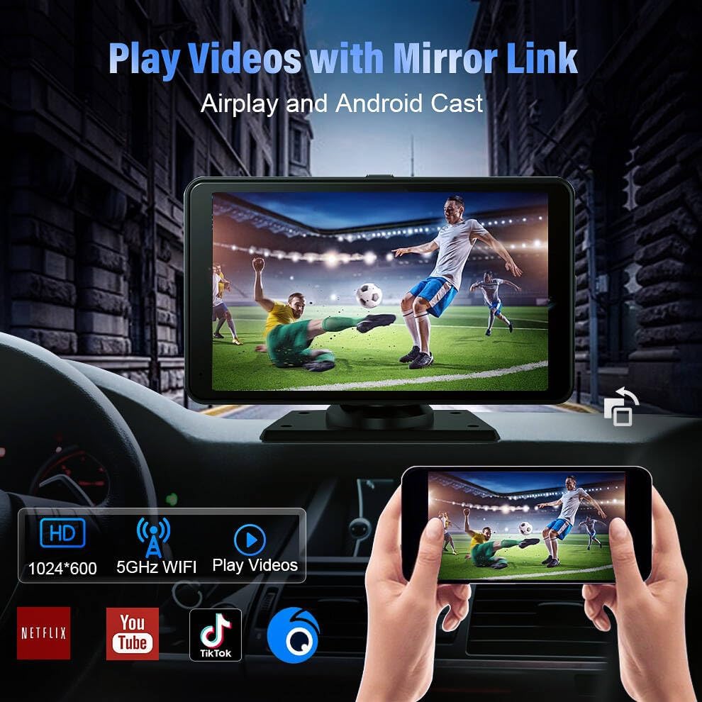 APPLE AIRPLAY وANDROIDCAST: شاشة Sunitec apple carplay لدعم السيارة Mirror Link مع IOS Apple Airplay وAndroid Cast، لسهولة الاتصال ومزامنة أي فيديو أو موسيقى أو بث مباشر مثير للاهتمام من هاتف iPhone وAndroid إلى Carplay.