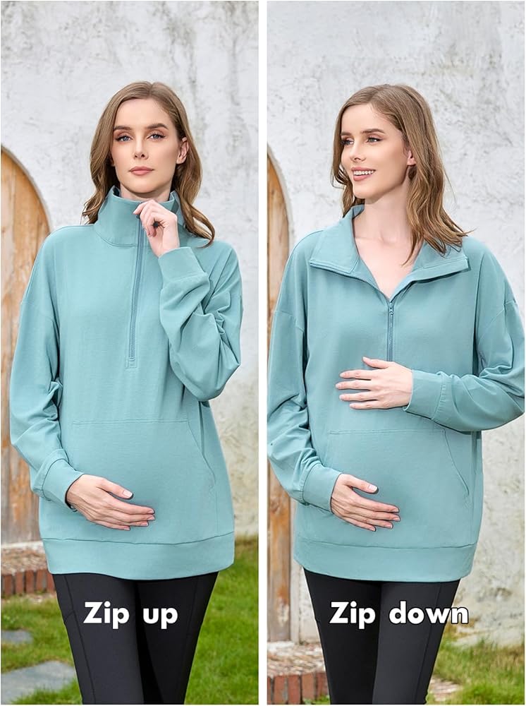 تصميم عصري: قمصان حمل بنصف سحاب، بلوفر كبير الحجم للحمل، قمصان حمل بسحاب ربع، سويت شيرتات للحمل بأكمام طويلة بسحاب 1/4، ملابس خريفية للأمهات، ملابس حمل عصرية شتوية