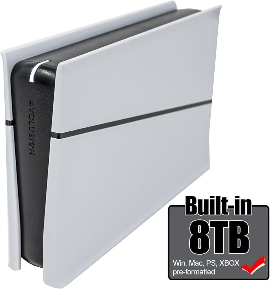 Avolusion PRO-5U Series 8TB (8-Terabyte) External Hard Drive is the value hard drive upgrade kit provides the best and easy solution to expand your Desktop PC, Laptop, (Windows , MacOS), PS or XBOX Game console. (HDD Re-format required) USB 3.0 port to expand your device capacity instantly! Plug and Play USB 3.0 interface providing a perfect portable storage solution for you to store & backup your game data, music, picture, video and more! Avolusion PRO-5U Series External Hard Drive designed to work with your Windows OS Desktop PC, Laptop, PS & XBOX Game console perfectly! It comes with silent fan-less design to keep your External Hard Drive operate quietly!