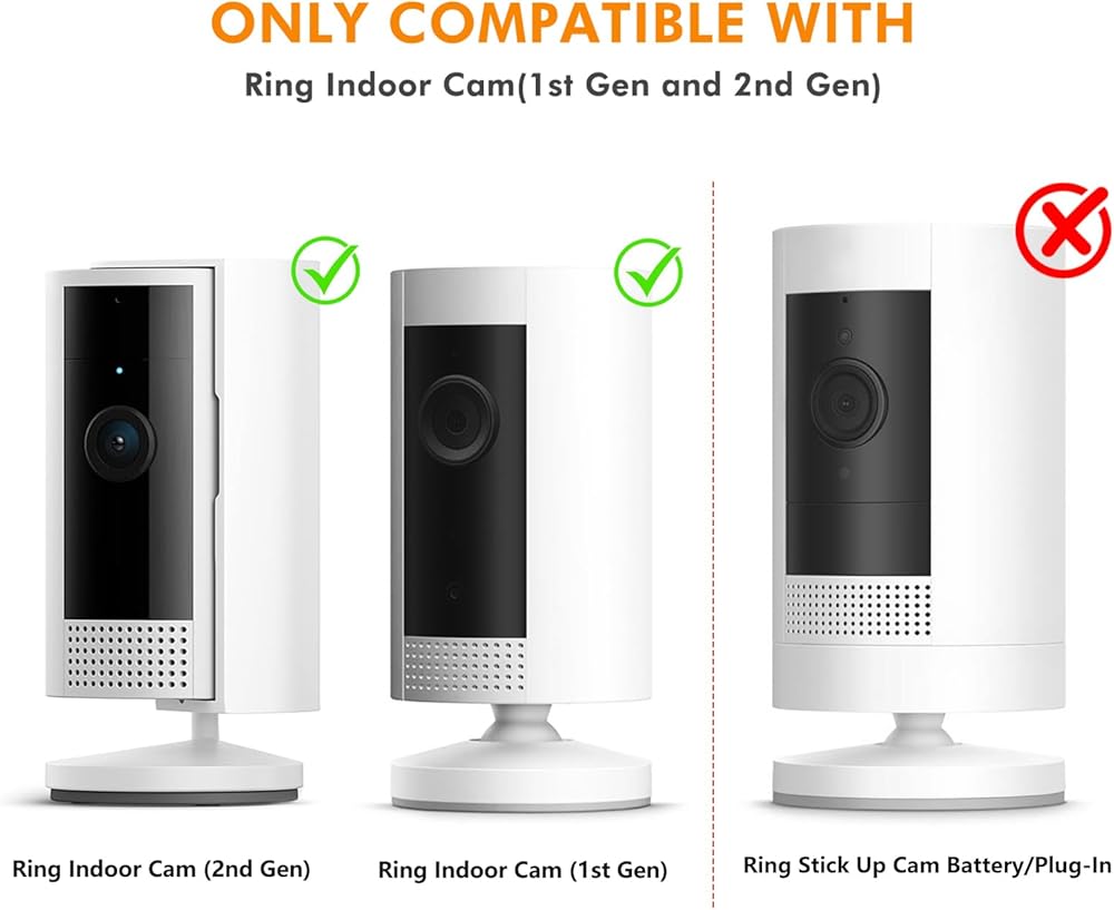 التوافق: متوافق فقط مع كاميرا Ring Indoor Cam (الجيل الأول والجيل الثاني)، وغير متوافق مع الكاميرات الأخرى.