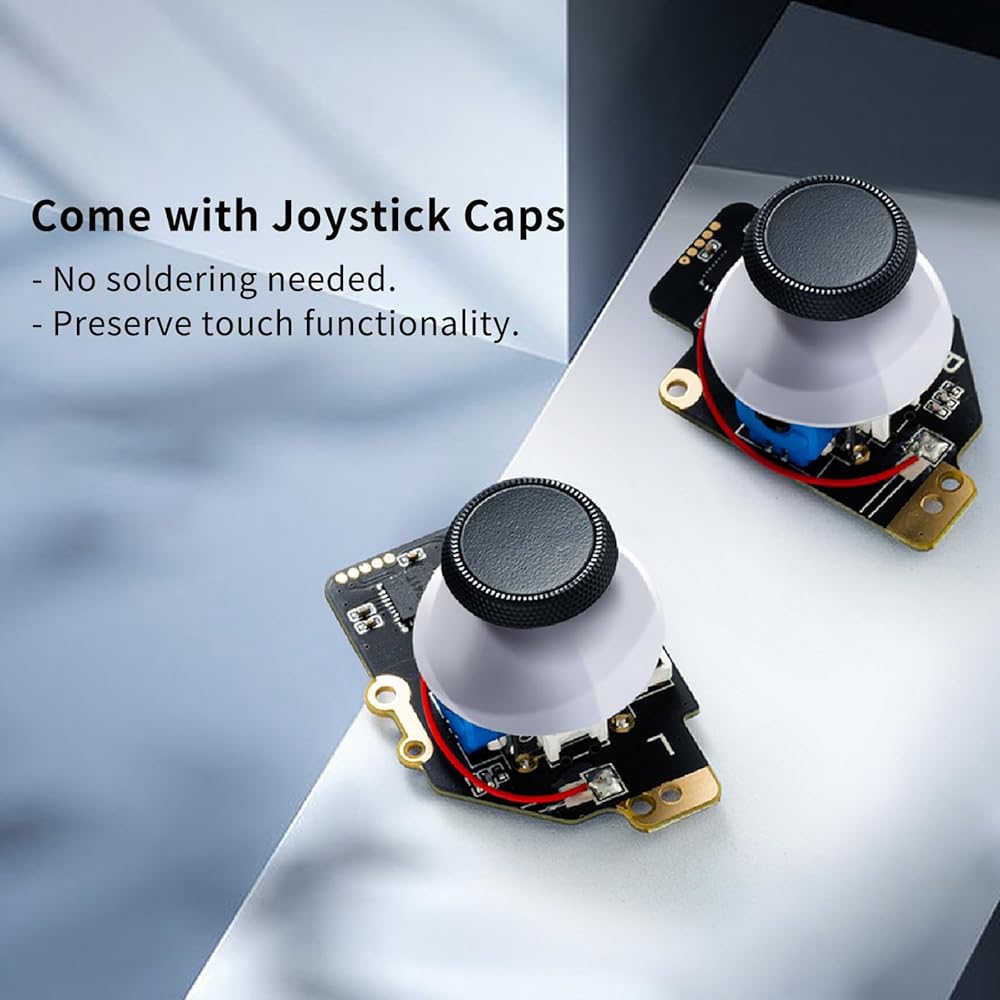 [Easy Installation] No need to worry about soldering, the joystick comes with installation caps that preserve Steam Deck's original touch functionality. If you experience stuck joystick issues, it is due to the cap that comes pre-installed and came loose during shipping. You only need to press the cap vertically down in the center position to use it normally.