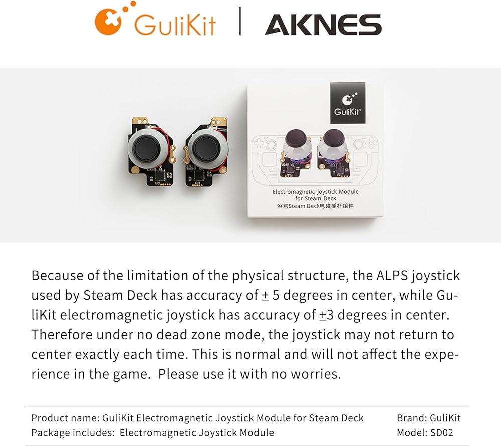 [Perfect Compatibility] Gulikit Electromagnetic Module joystick (New model: SD02), designed to perfectly fit Steam Deck Type A and Type B. The included converter allows you to easily select the TYPE you want. (‘Settings → System → Steam Deck Controller ID', ‘MEDA' is Type A, ‘MHDA' is Type B)