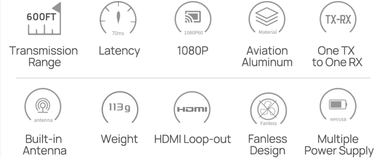【جودة صورة عالية الوضوح، نقل متزامن للصوت والفيديو】: جهاز إرسال واستقبال HDMI لاسلكي يدعم ما يصل إلى 1080P60، سواء كان مراقبة المخرج/الكاميرا أو النقل المباشر يمكن التعامل معه بسهولة.