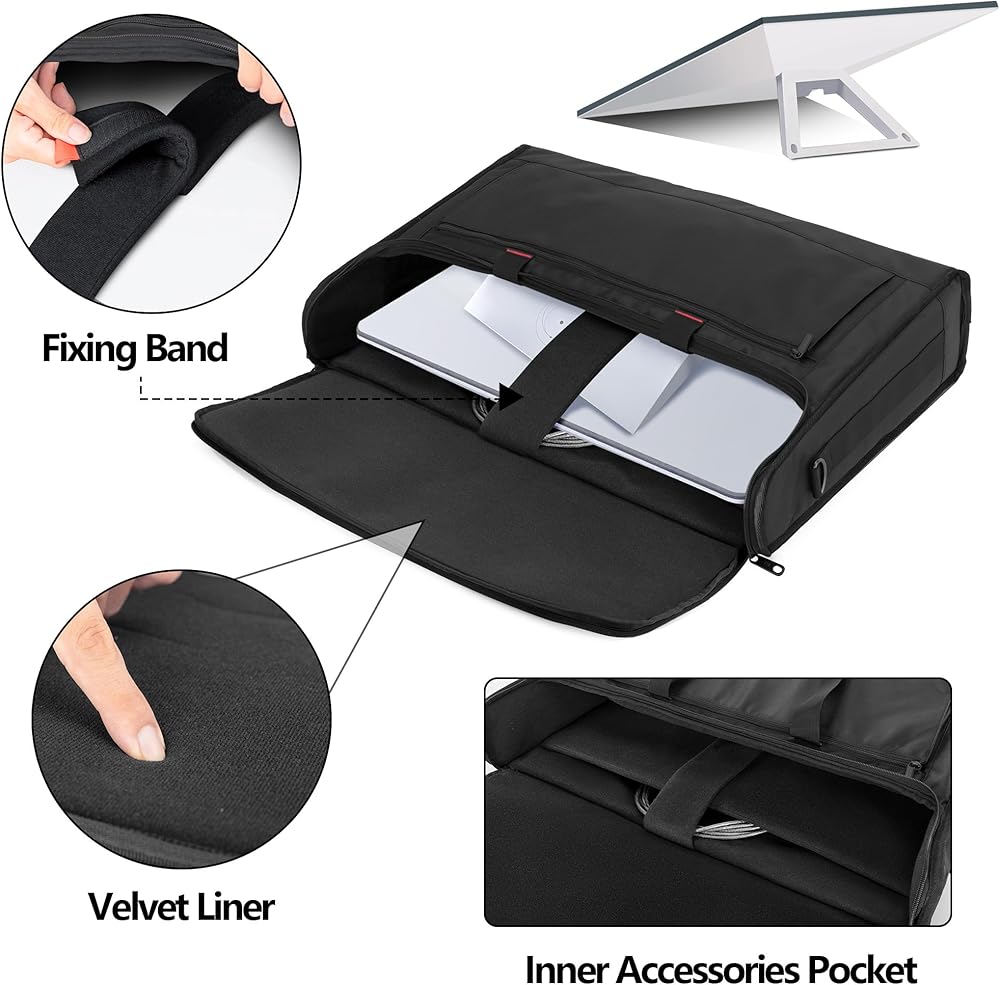 حماية رائعة: تصميم من ثلاث طبقات: المادة الخارجية متينة ومقاومة للتمزق والماء، والجزء الداخلي عبارة عن بطانة مخملية ناعمة، بالإضافة إلى وسادة إسفنجية سميكة من البولي إيثيلين. حماية شاملة لجهازك من الخدوش والصدمات