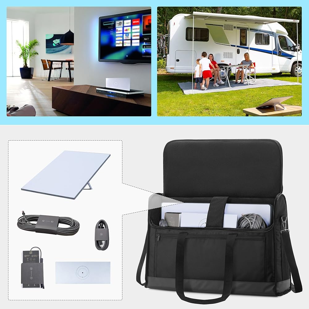 مساحة كبيرة: توجد مساحة مبطنة لجهاز Starlink Gen 3 أو Mini. والحزام المبطن القابل للتعديل يمكنه تثبيت الجهاز وتقليل الاهتزاز. وفي الوقت نفسه، تحتوي الحجرة على مساحة واسعة وحافظة لجميع الملحقات، مثل مصدر الطاقة، وجهاز التوجيه، والمسند، والكابلات، والكمبيوتر المحمول، والمزيد