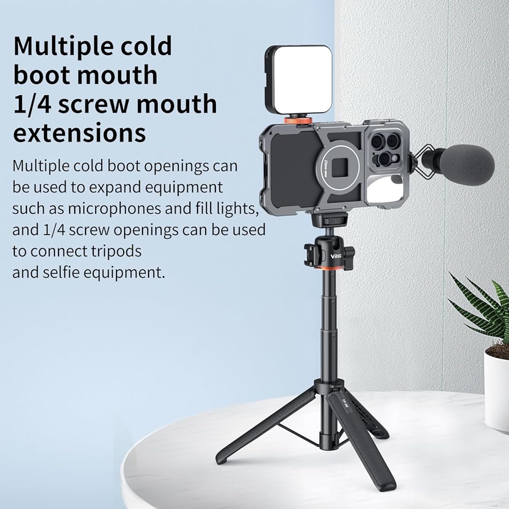 VRIG IPhone15 Promax جميع المعادن للهاتف المحمول قفص أرنب محمول باليد أفقي ورأسي مثبت للتصوير الفوتوغرافي الاحترافي المضاد للاهتزاز ومقبض توسيع متعدد الوظائف