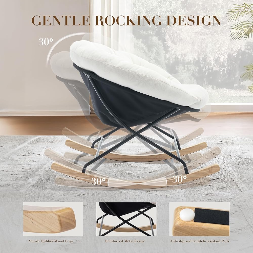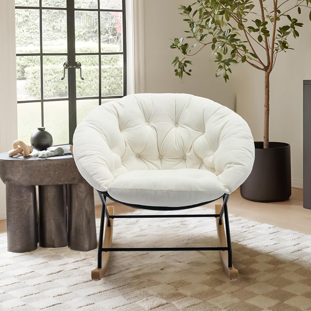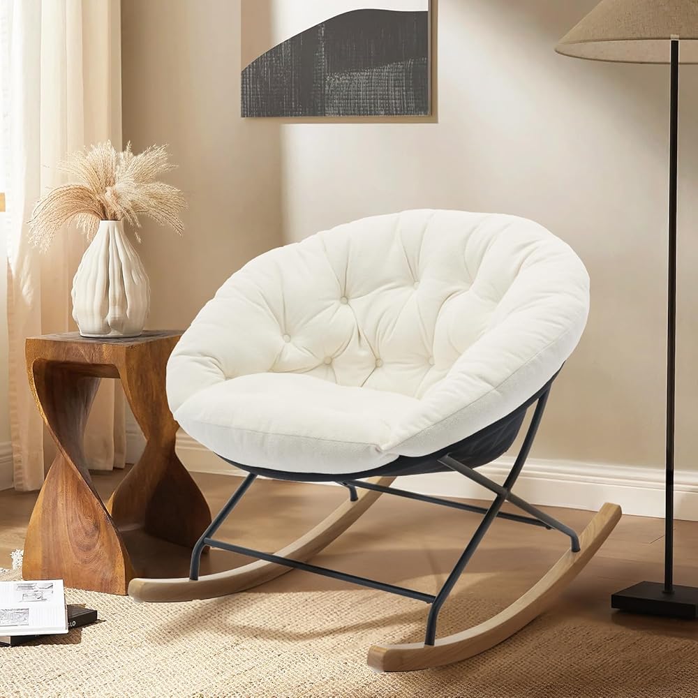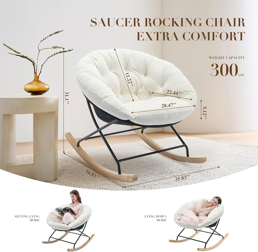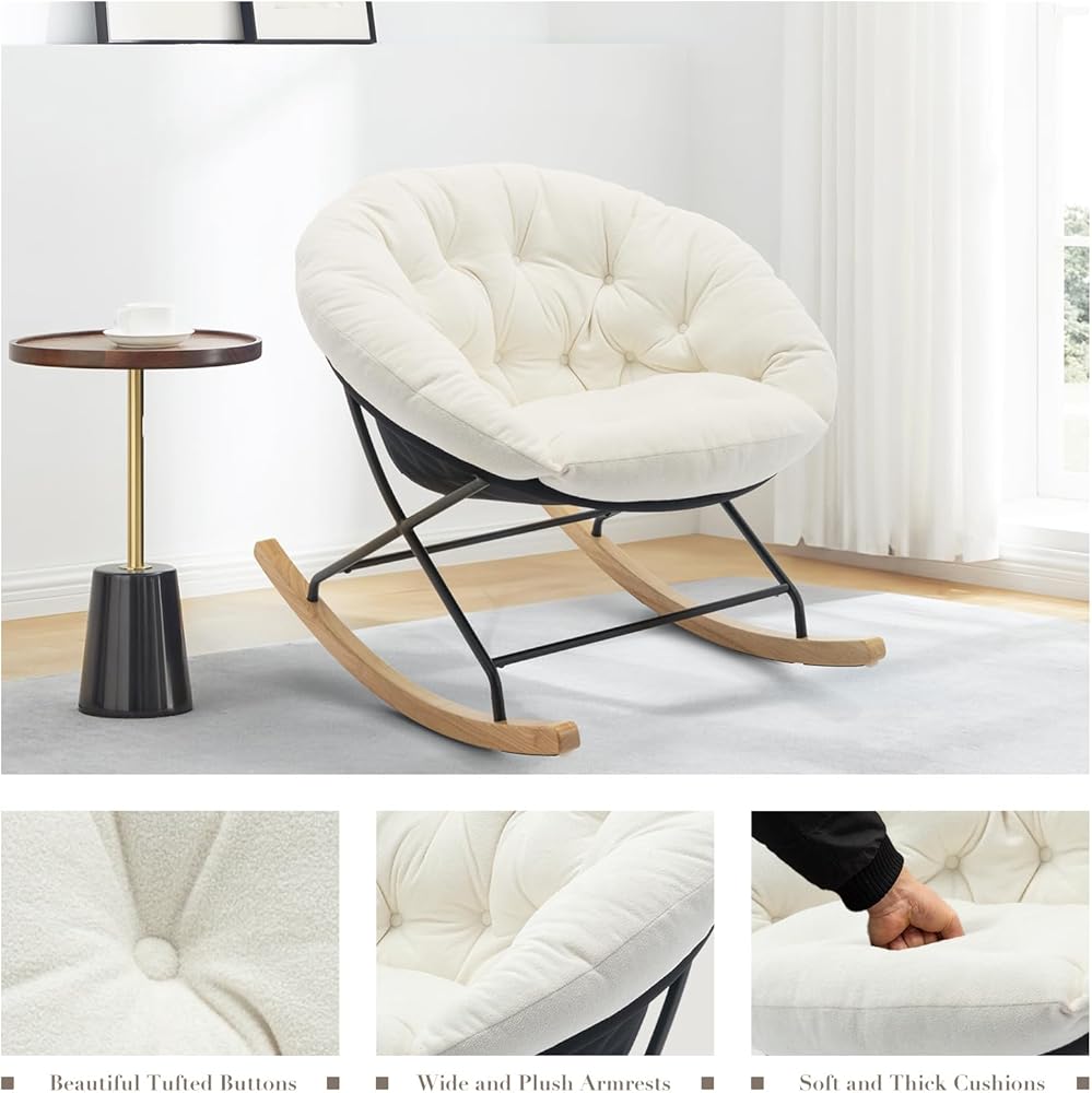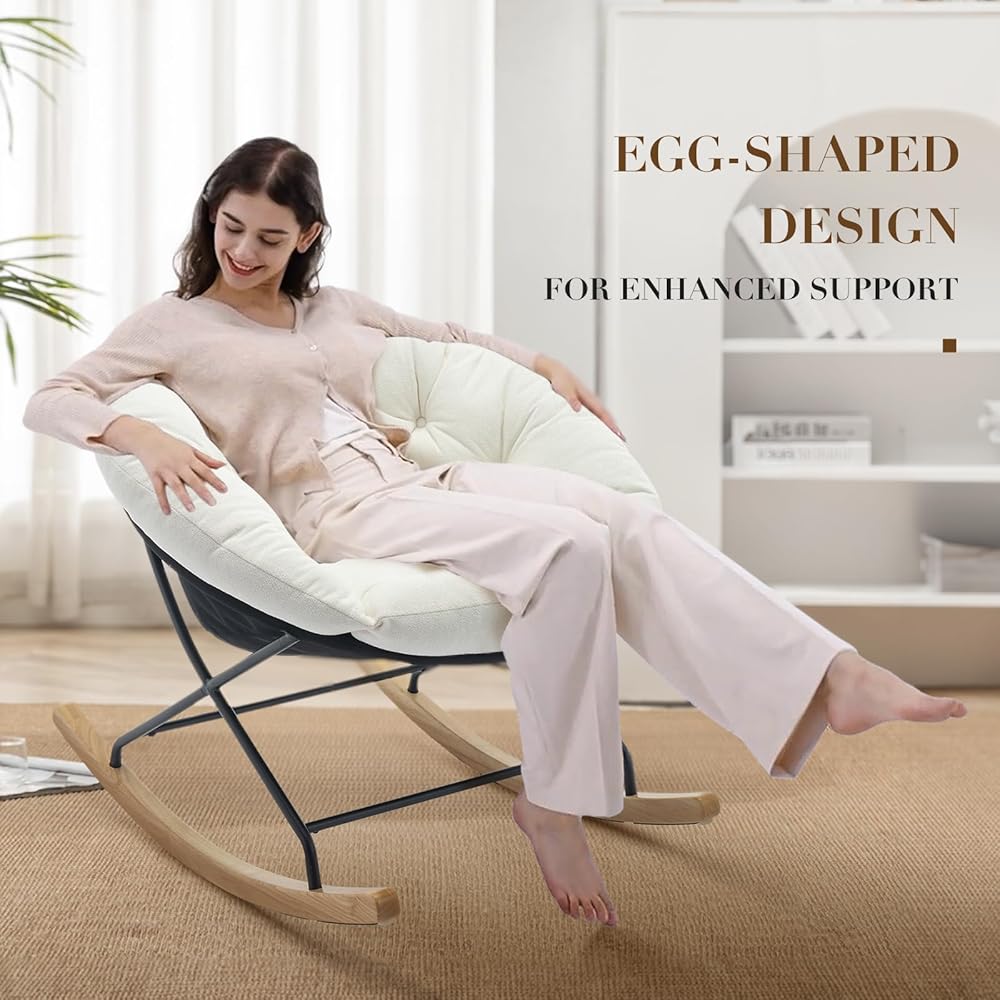 🍀 Egg Shaped Rocker with Superior Comfort: Our upholstered Papasan saucer rocking chair features a thick, plush, padded cushion that cradles you in comfort. The cushion's soft, tufted design ensures a cozy and relaxing experience every time you sit down.