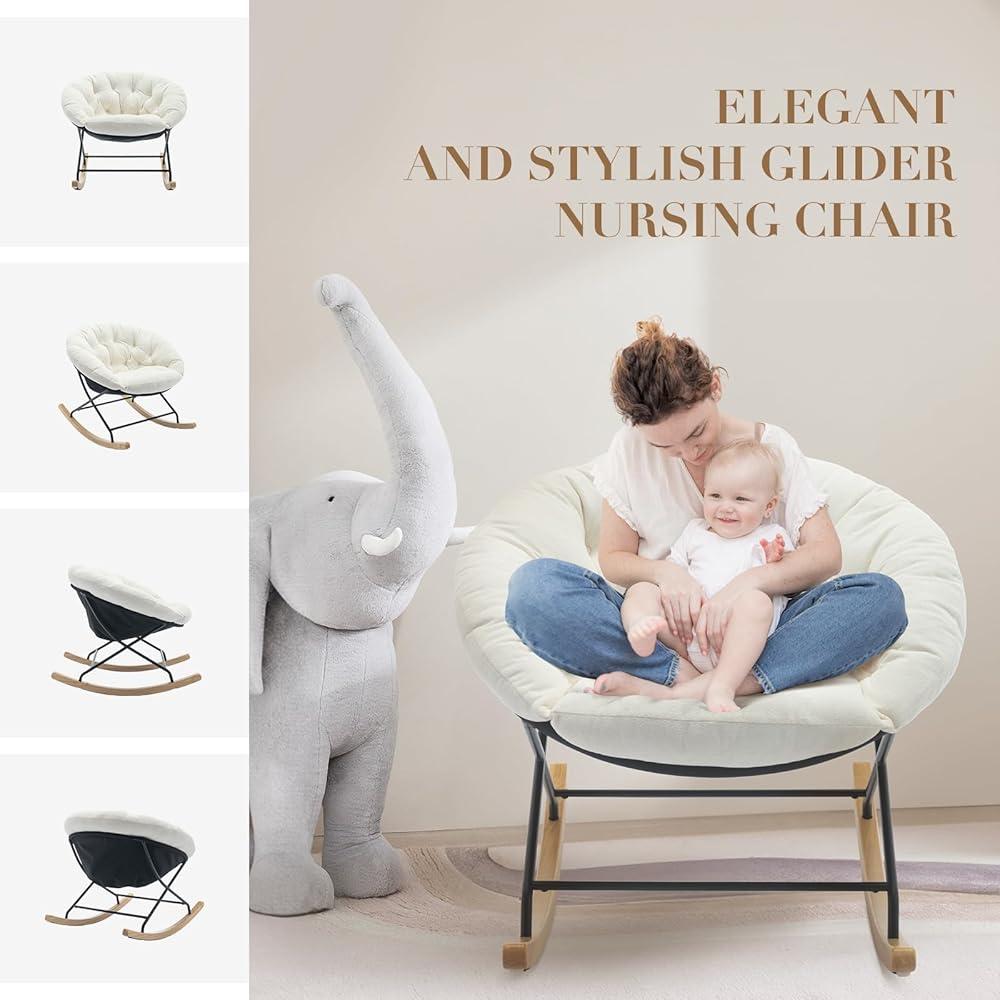 🍀 Comfortable Rocking Chair with Premium Quality: Built with a robust metal frame and a solid wooden rocking base, this nursing rocker chair offers superior durability and stability, supporting up to 300 lbs. The selected materials ensure this living room rocking chair remains a centerpiece in your home for years to come.