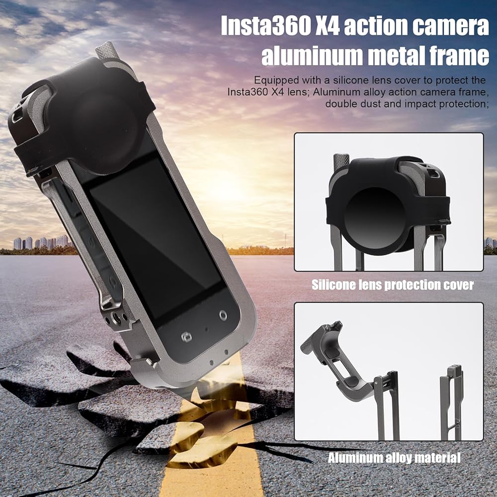 مجموعة حافظة واقية لجهاز Insta360 x4، غطاء إطار معدني للكاميرا مع حافظة عدسة من السيليكون، ملحقات حماية غطاء العدسة المرنة الناعمة للكاميرا، حماية فعالة محكمة الغلق