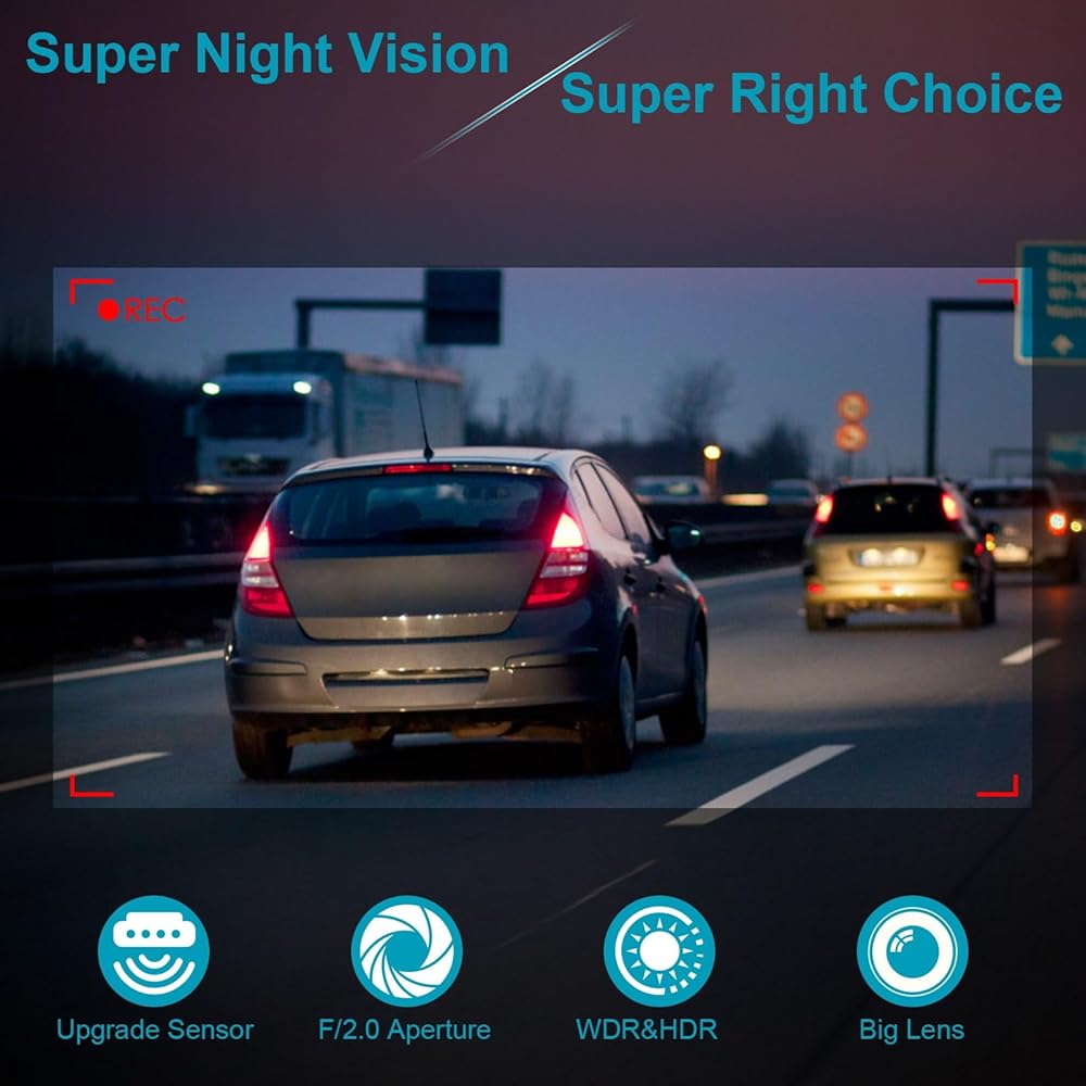 [DASHCAM مع رؤية ليلية متقدمة مع تقنية WDR] - تتميز كاميرا السيارة بتقنية WDR & HDR، ونظام عدسات 6 زجاج، وفتحة F2.0 كبيرة جدًا. يعمل هذا الإعداد المتقدم على تحسين حساسية الضوء، ويقلل الضوضاء، ويوازن التعرض للضوء، مما يضمن الحصول على لقطات واضحة ومفصلة في ظروف الإضاءة المنخفضة. سواء كنت تقود السيارة على الطرق المظلمة أو في الليل، فإن كاميرا مراقبة السيارة هذه تلتقط التفاصيل المهمة بوضوح لا تشوبه شائبة.