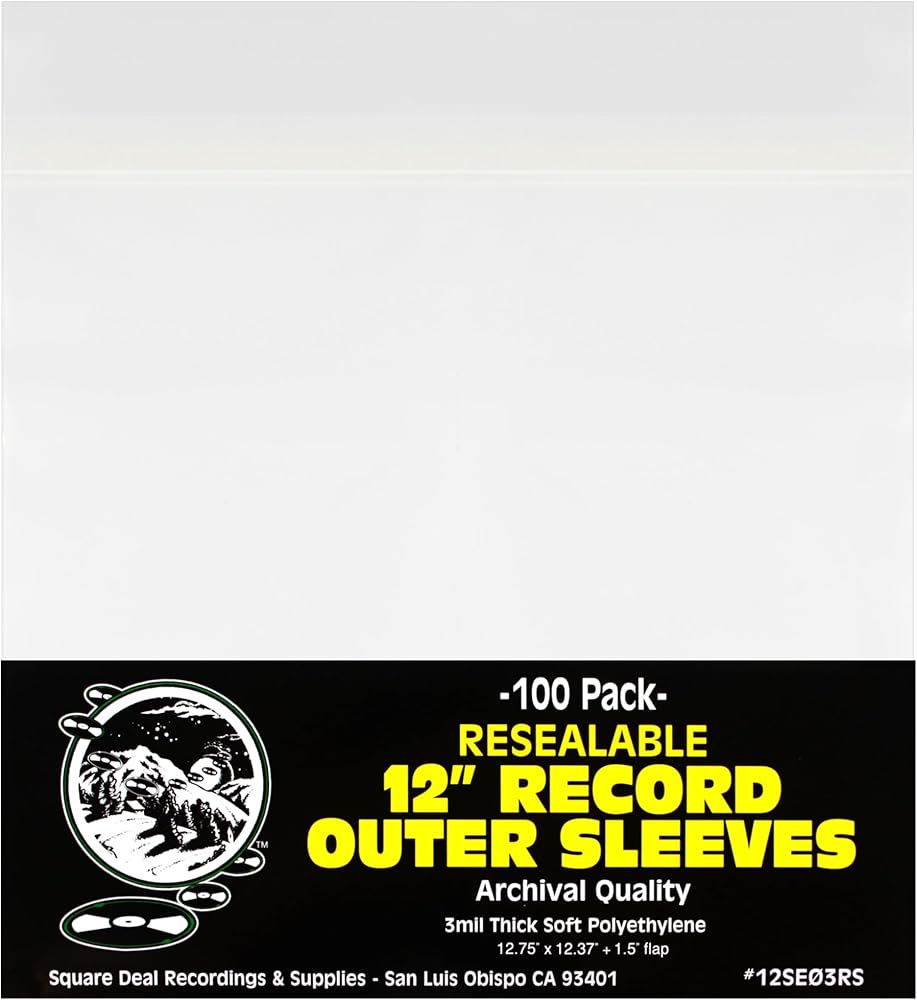These soft polyethylene sleeves are a great choice for protecting your record collection. The 3 mil thickness provides maximum protection from dust & wear, and the polyethylene plastic is softer with strong seams. The special adhesive used on this sleeve allows you to open & reseal the record many times, keeping your vinyl safe and dust free.