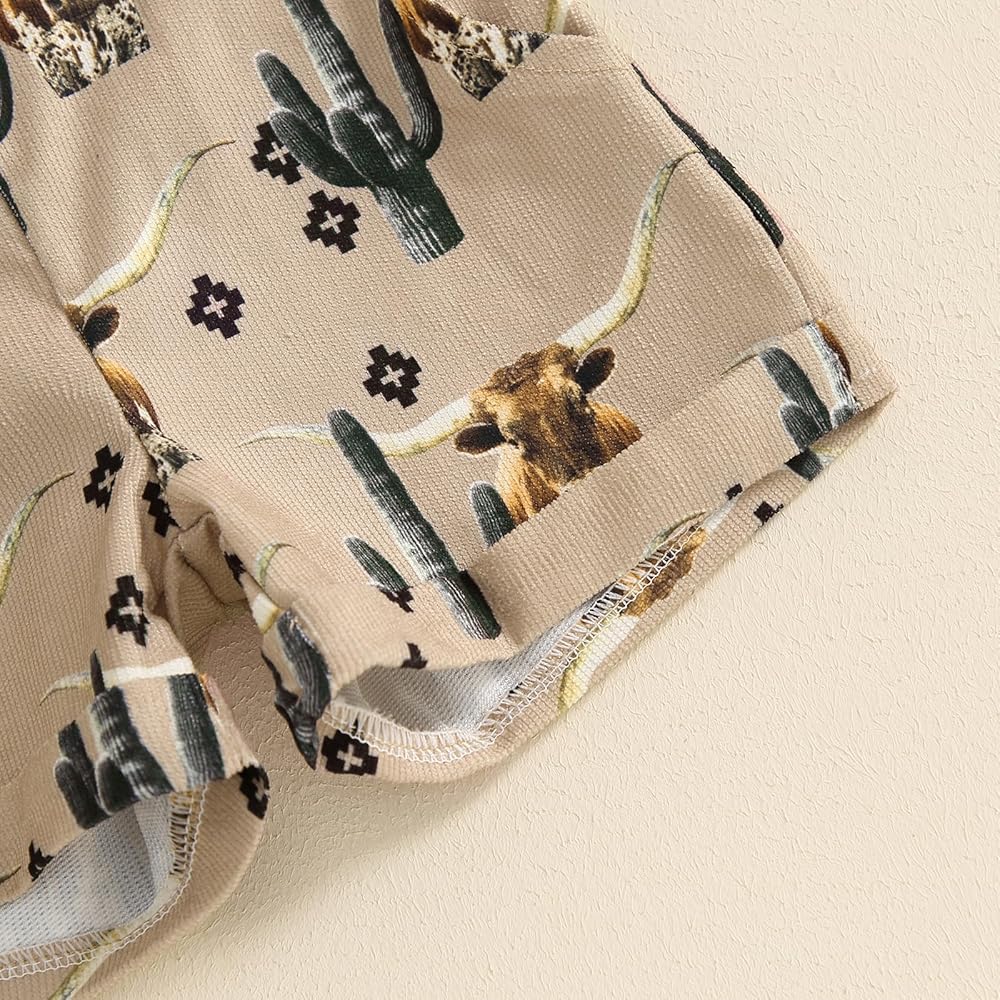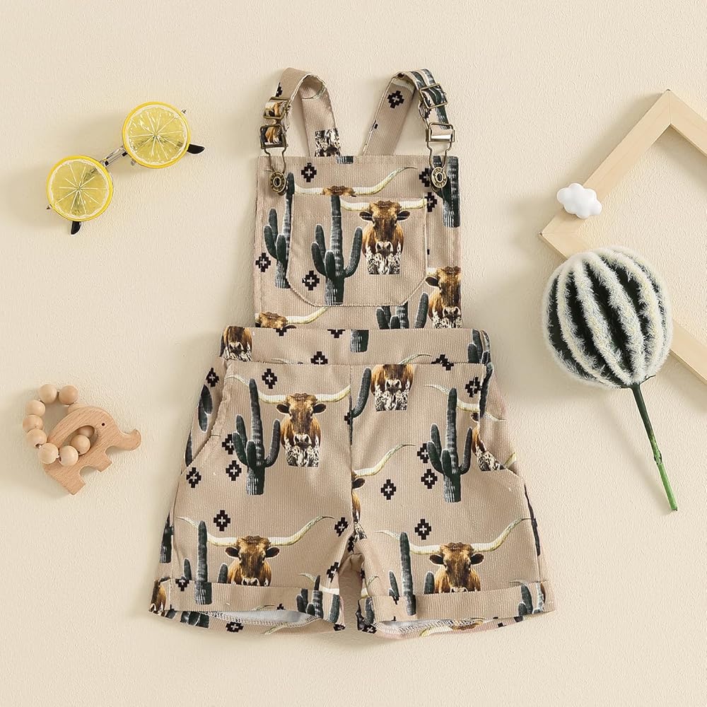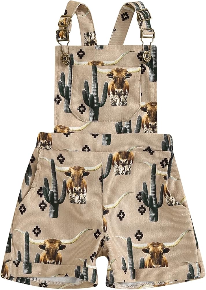 Toddler Baby Girl Western Horse Cactus Overalls Shorts Sleeveless Suspender Jumpsuit Romper Summer Outfit Clothing