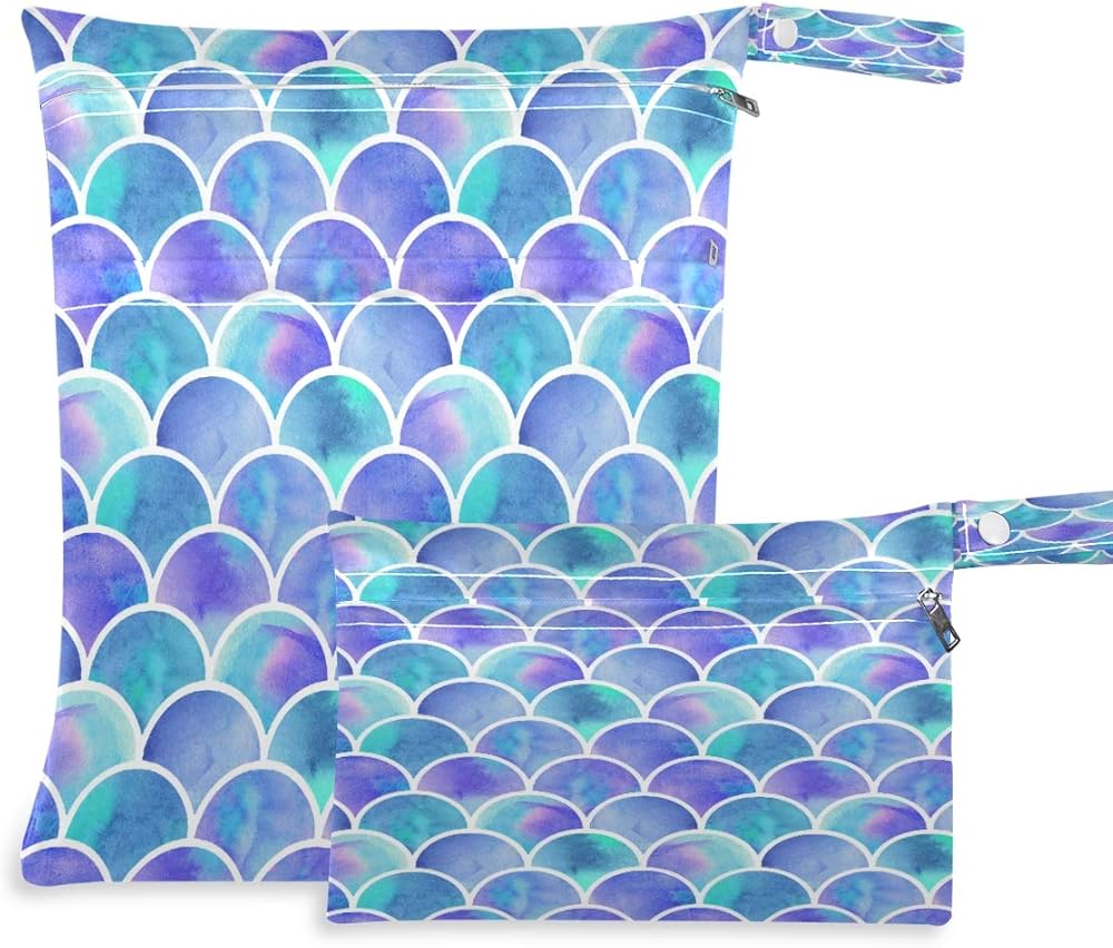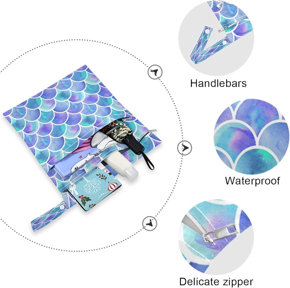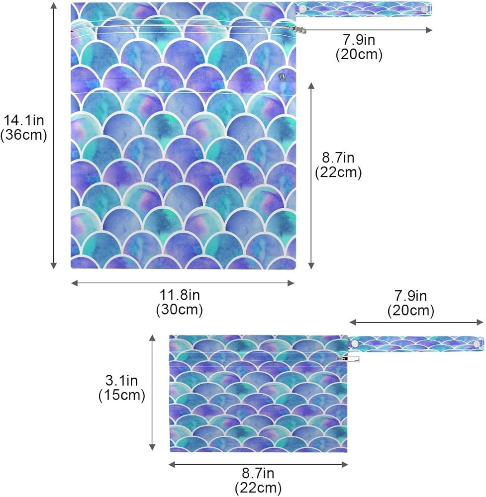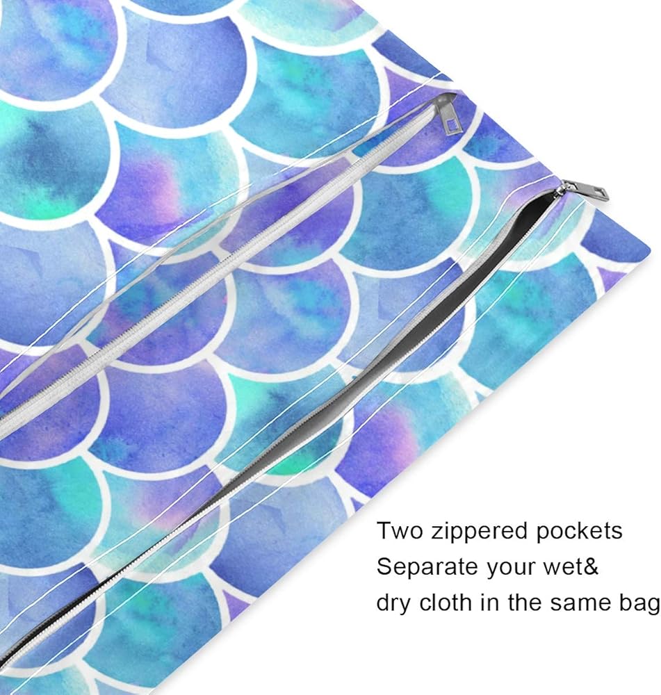 two zipper compartments for separating wet and dry items. Each bag contains a "wet" and dry" part