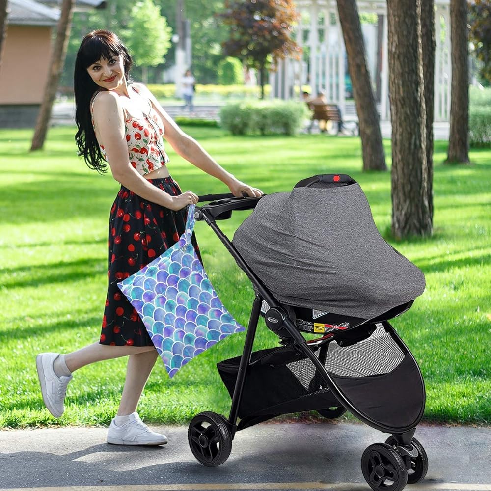 Design with lanyard to allow it can be hung anywhere.Strap handle with snap to attaches to stroller, handle or closet rod.