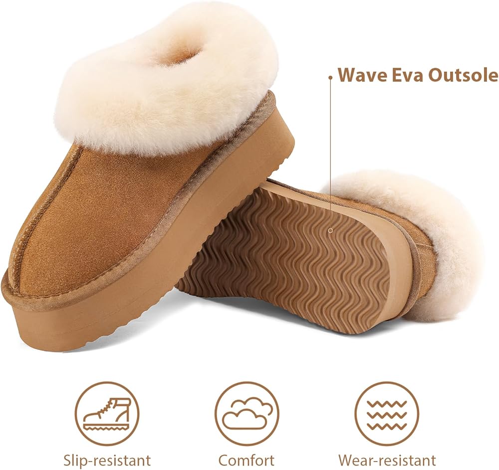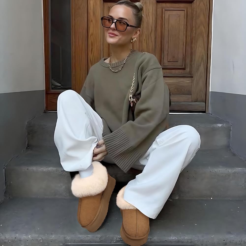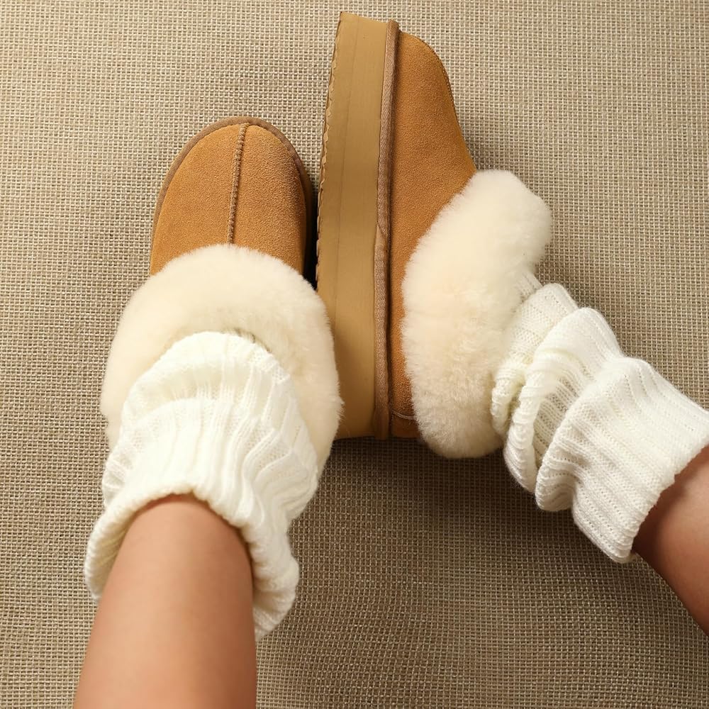 【شبشب منصة】 تم تصميم الشباشب النسائية من جلد سويدي البقر المسامي، وياقة شيرلينغ دافئة وناعمة وبطانة من الفرو الصناعي، مريحة ودافئة. طوق الفرو يحبس درجة الحرارة بشكل أفضل، مما يضمن الدفء والراحة طوال اليوم. يمكن أن يتم عصر ياقات الشيرلينغ الناعمة أثناء فترات النقل الطويلة، قم بتمشيطها بفرشاة صغيرة أو مشط للحصول على ياقة فرو ناعمة ورقيقة.