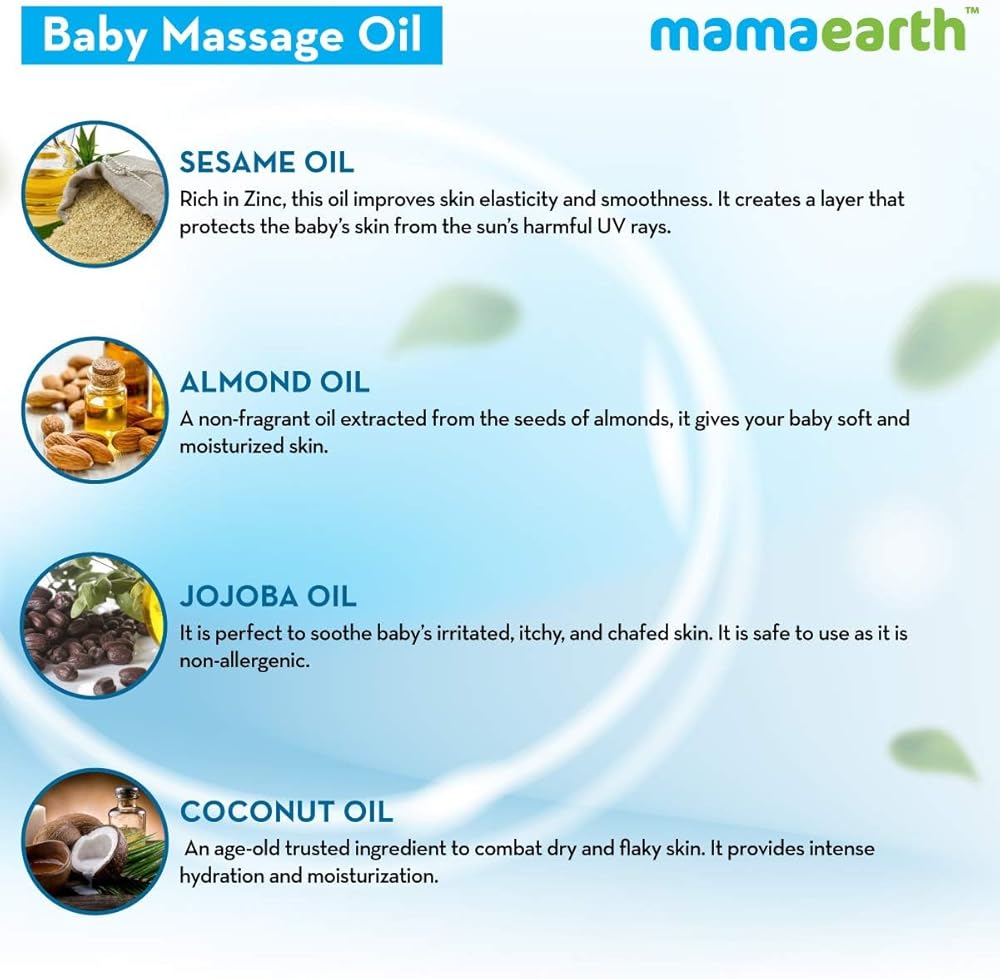 NOURISHES THE SKIN: The natural ingredients present in the massage oil provide your baby's skin the nourishment and care it needs.