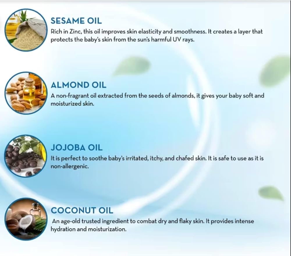 KEEPS SKIN SOFT & SUPPLE: The combination of Almond & Sesame oils keeps your baby's skin soft and supple.