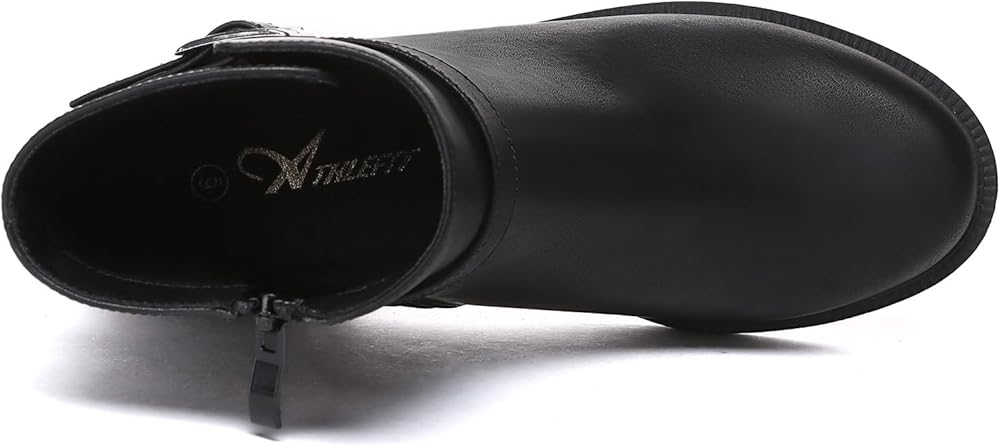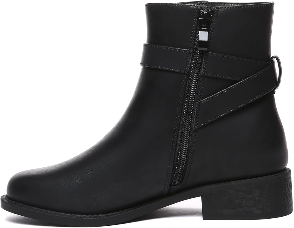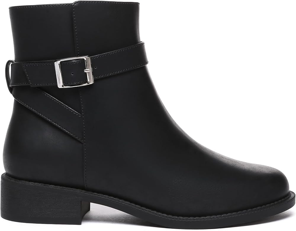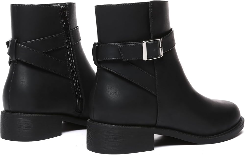 تصميم أنيق: أحذية طويلة للكاحل ذات طراز كاجوال بمقدمة مستديرة، وكعب عريض 1.4 بوصة، وسحاب جانبي للإغلاق لسهولة الارتداء والخلع، وتصميم إبزيم معدني بسيط يضيف إحساسًا بالأناقة إلى الأحذية القصيرة النسائية