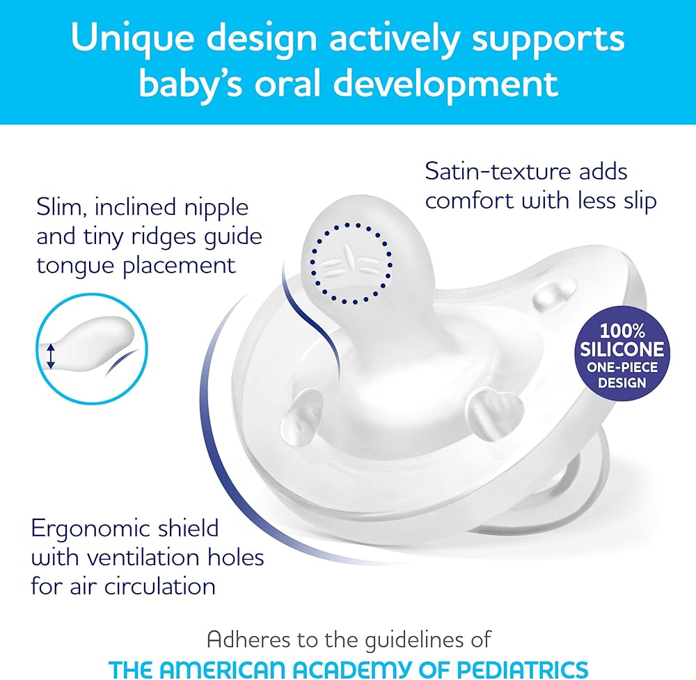 Finally, a pacifier that soothes babies and parents too! The PhysioForma Soft Silicone Orthodontic Pacifier is a 100% silicone one-piece pacifier that isn't just for pacifying, but is also clinically developed for comfort, breathing and orthodontic benefits.