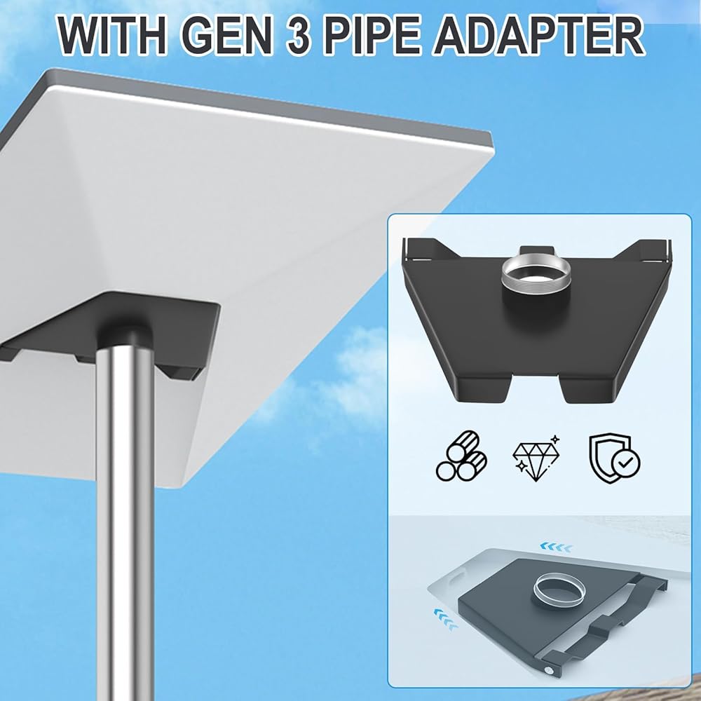 تركيب سريع وسهل: سهل التركيب باستخدام الأجهزة المتضمنة. ما عليك سوى إدخال دعامة Starlink Gen3 في فتحة الهوائي وشد براغي التثبيت. بعد ذلك، قم بتوصيل قضيب لا يزيد قطره عن 1.7 بوصة بمحول الأنبوب وقم بتثبيته بمسمار القفل