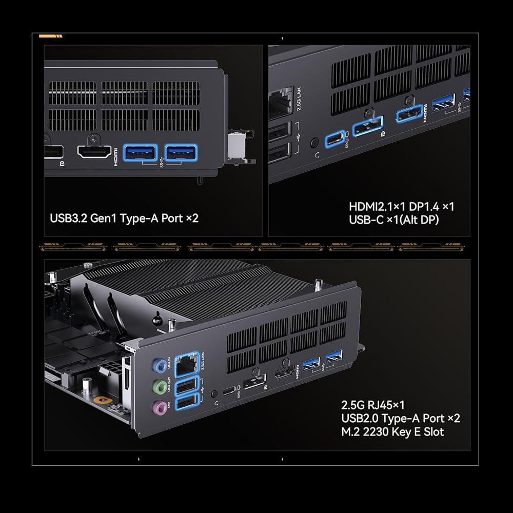 💥【واجهة شاملة】 تم تجهيز BD790i بثلاث واجهات لإخراج الفيديو، HDMI/DisplayPort/USB C. يمكنك توصيل ما يصل إلى ثلاث شاشات في نفس الوقت (حتى 8K 60 هرتز). يتيح لك القيام بمهام متعددة بسلاسة لزيادة الإنتاجية. بالإضافة إلى ذلك، تتيح لك واجهات USBA 4x و1x 2.5GRJ45 التعامل مع المهام اليومية بسهولة.