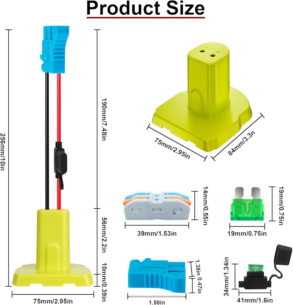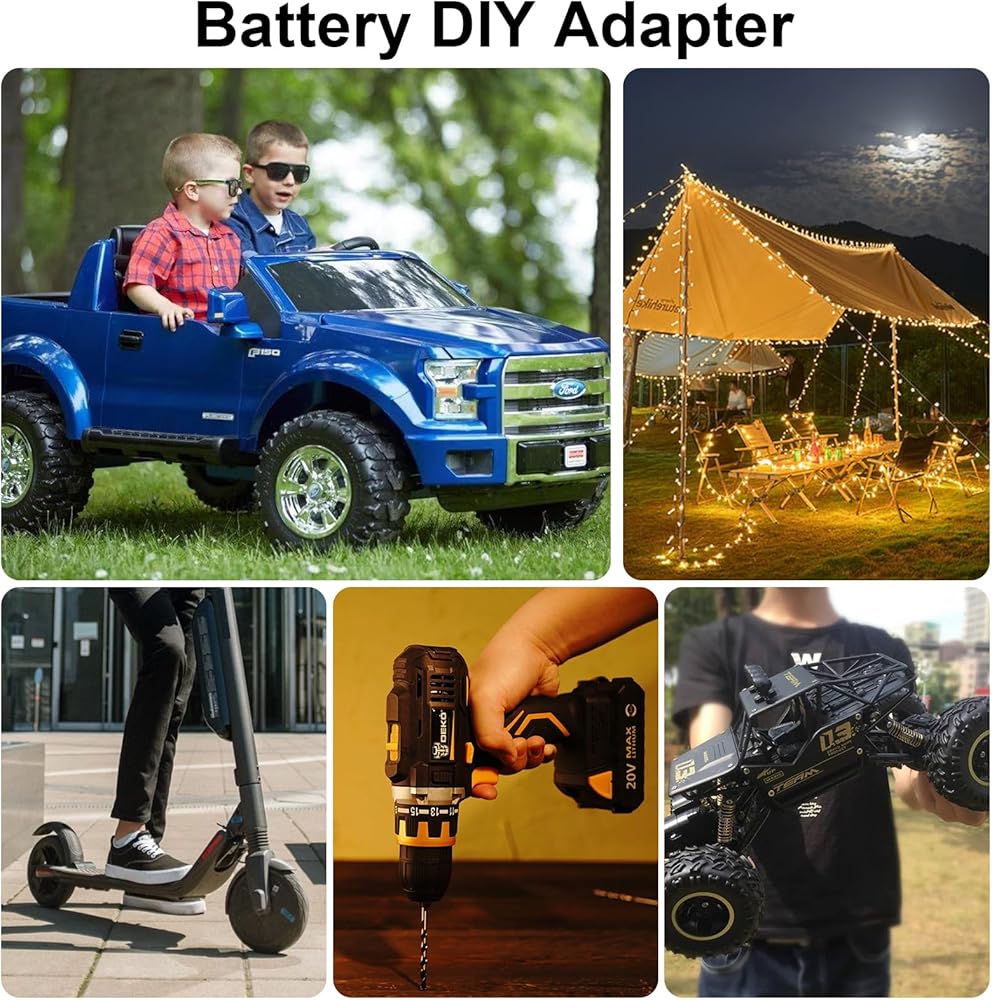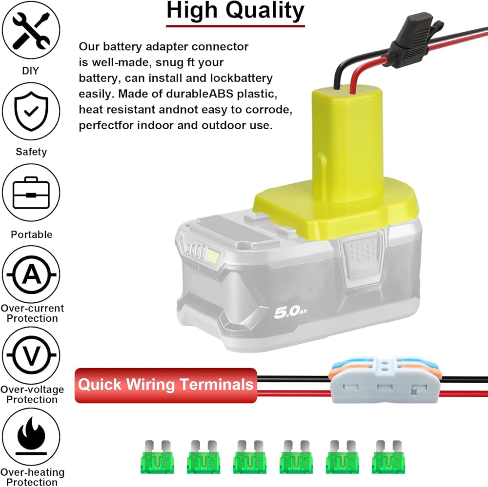 محول بطارية عجلة الطاقة مع موصل تسخير لمحول بطارية Ryobi 18 فولت، مجموعة محول بطارية عجلة الطاقة تحتوي على محطات الصمامات والأسلاك ومتوافقة مع ألعاب ركوب الأطفال Peg-Perego