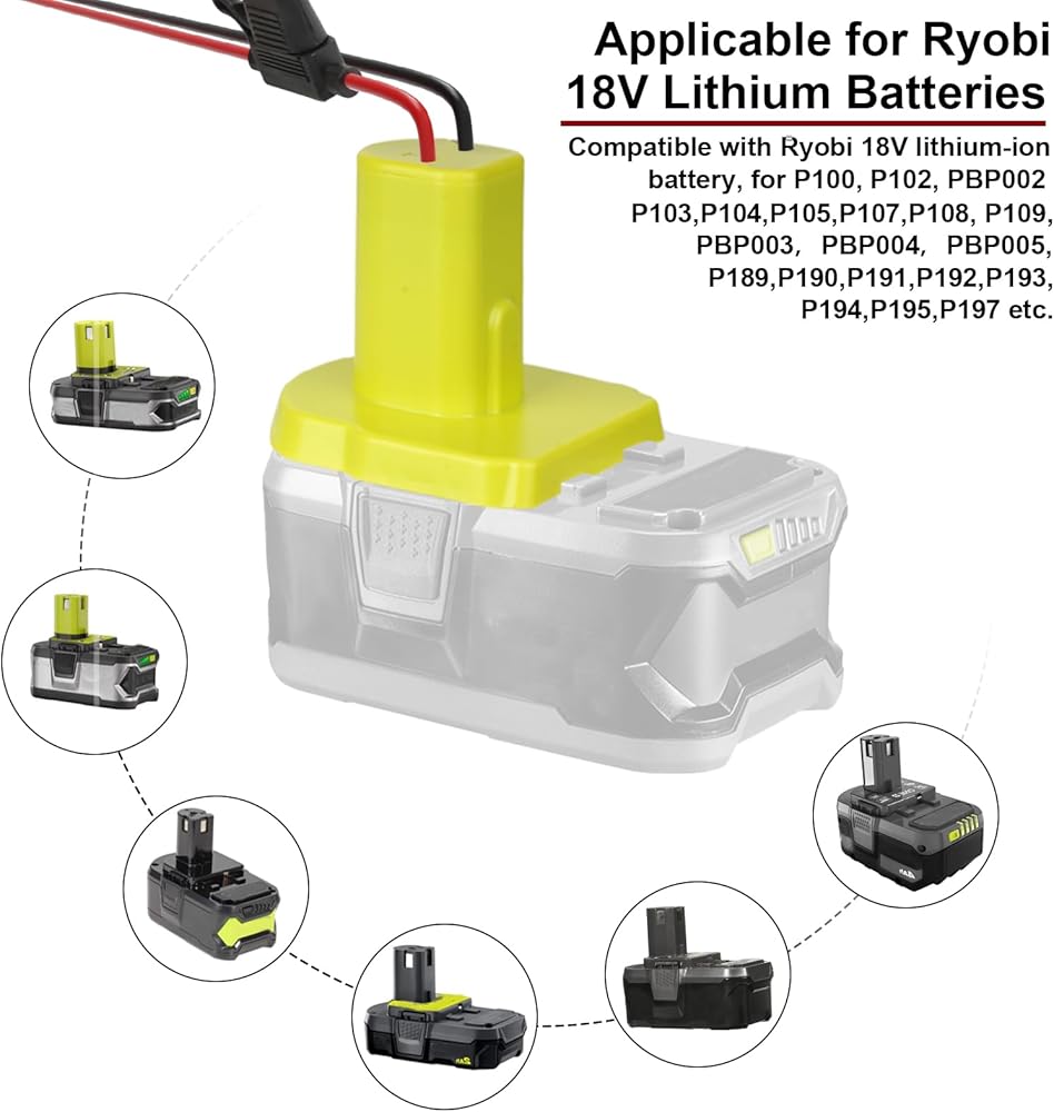 【التوافق: متوافق مع بطارية Ryobi 18 فولت، تعمل مع P102، P103، P104، P105، P107، P108، P109، Pbp002، Pbp003، Pbp004، Pbp005، Pbp006، P189، P190، P191، P192، P193، P194، P195، P197، Bpl-1820g، Bpl-1815، Bpl-18152 إلخ. موصلات محول البطارية لدينا تناسب بطاريتك تمامًا، مما يجعل من السهل تركيب البطارية وقفلها.