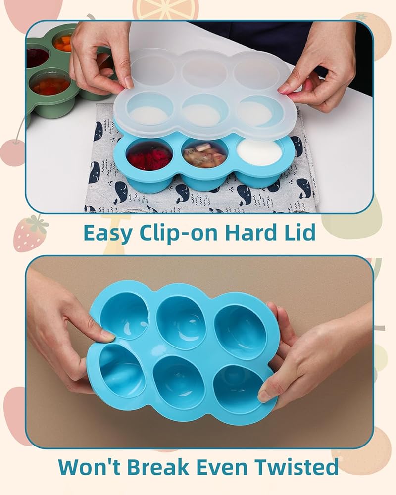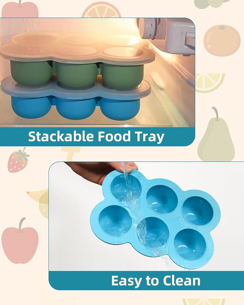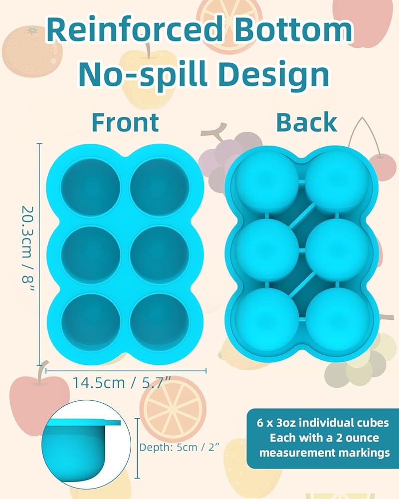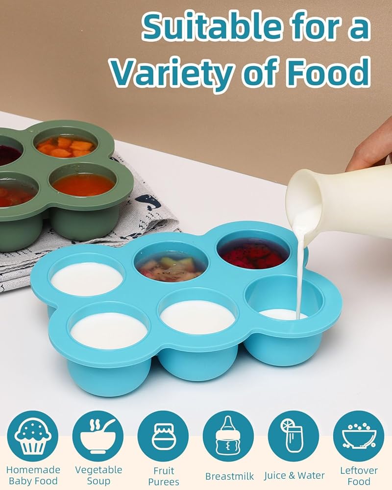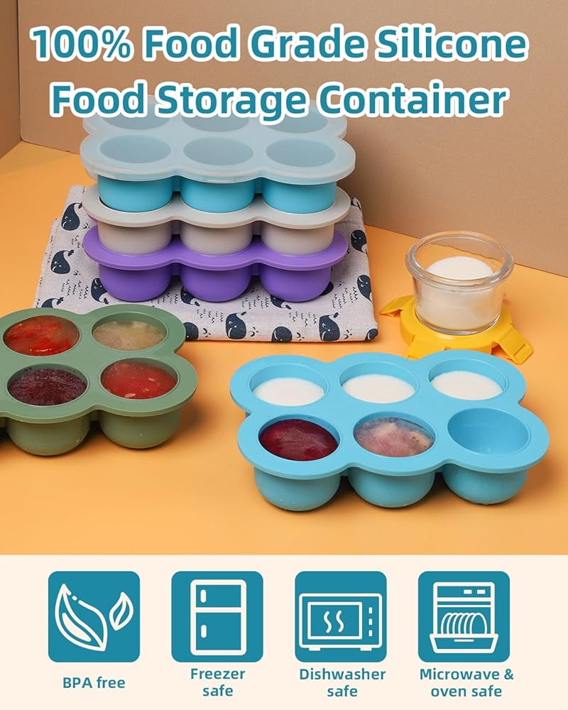 صينية تجميد طعام الأطفال سعة 6 × 3 أونصة - تتميز الصينية الصغيرة بسعة كبيرة جدًا! صديقة جدًا للأم، استخدم الصينية لتجميد حليب الثدي وهريس الفاكهة والخضروات وغيرها من أغذية الأطفال مسبقًا لتوفير الوقت، لا مزيد من كل يوم، مما يجعل الحياة أسهل.