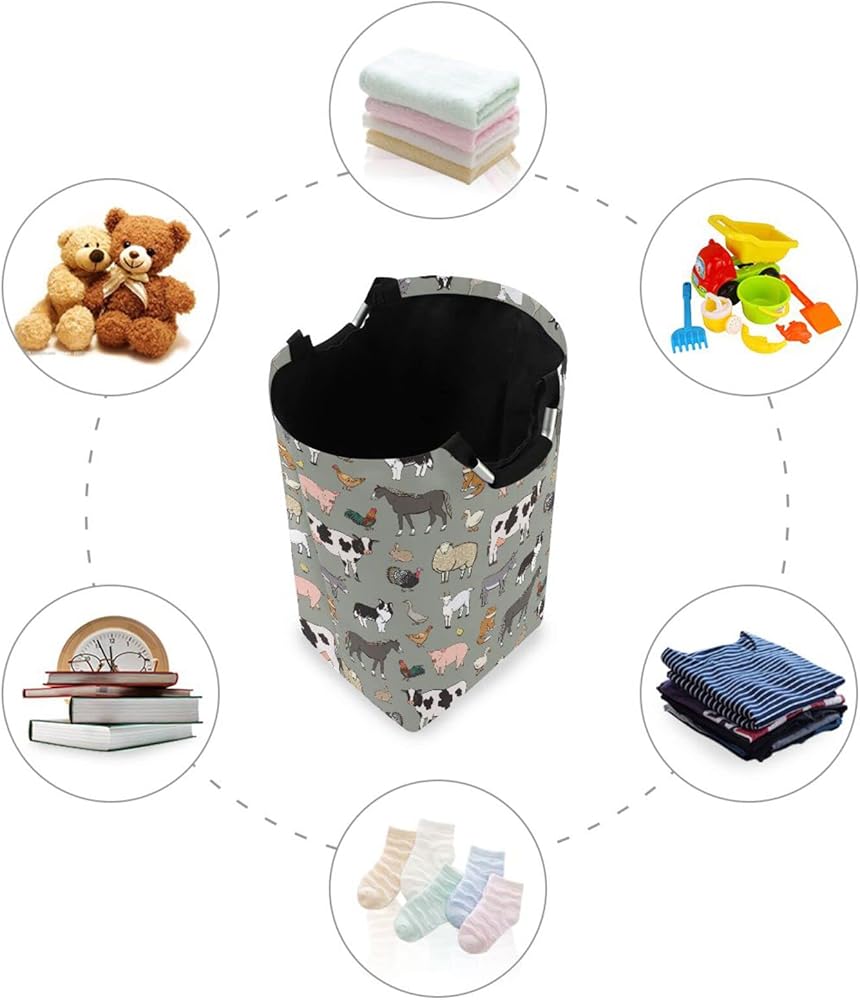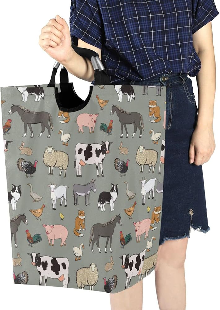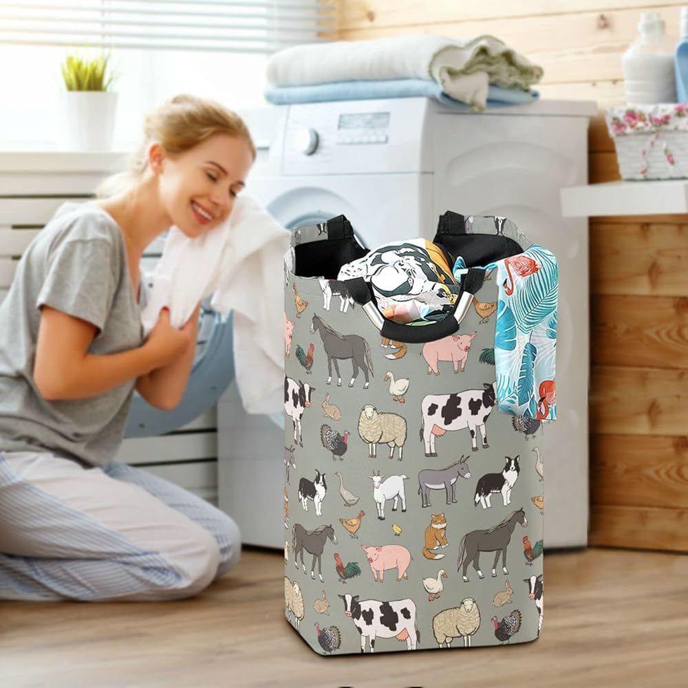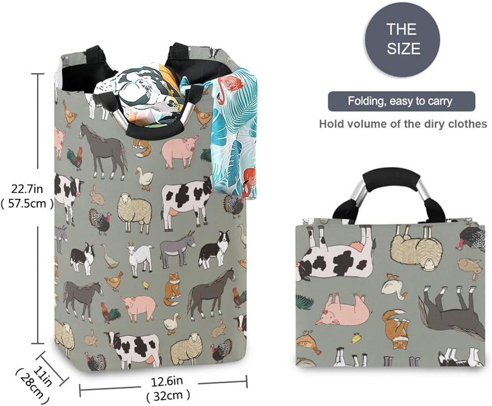 سلة غسيل حيوانات المزرعة من كيجاي، سلة تخزين ملابس كبيرة قابلة للطي مع مقبض لغرفة النوم والحمام والنوم وغرفة الأطفال