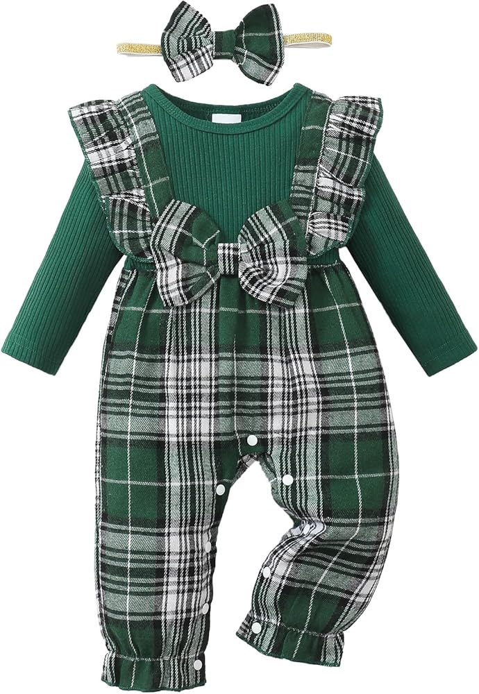 • ملابس لطيفة للفتيات الصغيرات: رومبر مكشكش بأكمام طويلة بتصميم مزيف من قطعتين، بذلة أطفال منقوشة مع فيونكات صغيرة، ملابس أطفال بفتحة ساق كبس لسهولة تغيير الحفاضات وارتداء ملابس لطيفة، هذا الزي لحديثي الولادة في الخريف والشتاء عملي وعصري، من المؤكد أن تجعل فتاتك تحصل على الكثير من الإطراء.