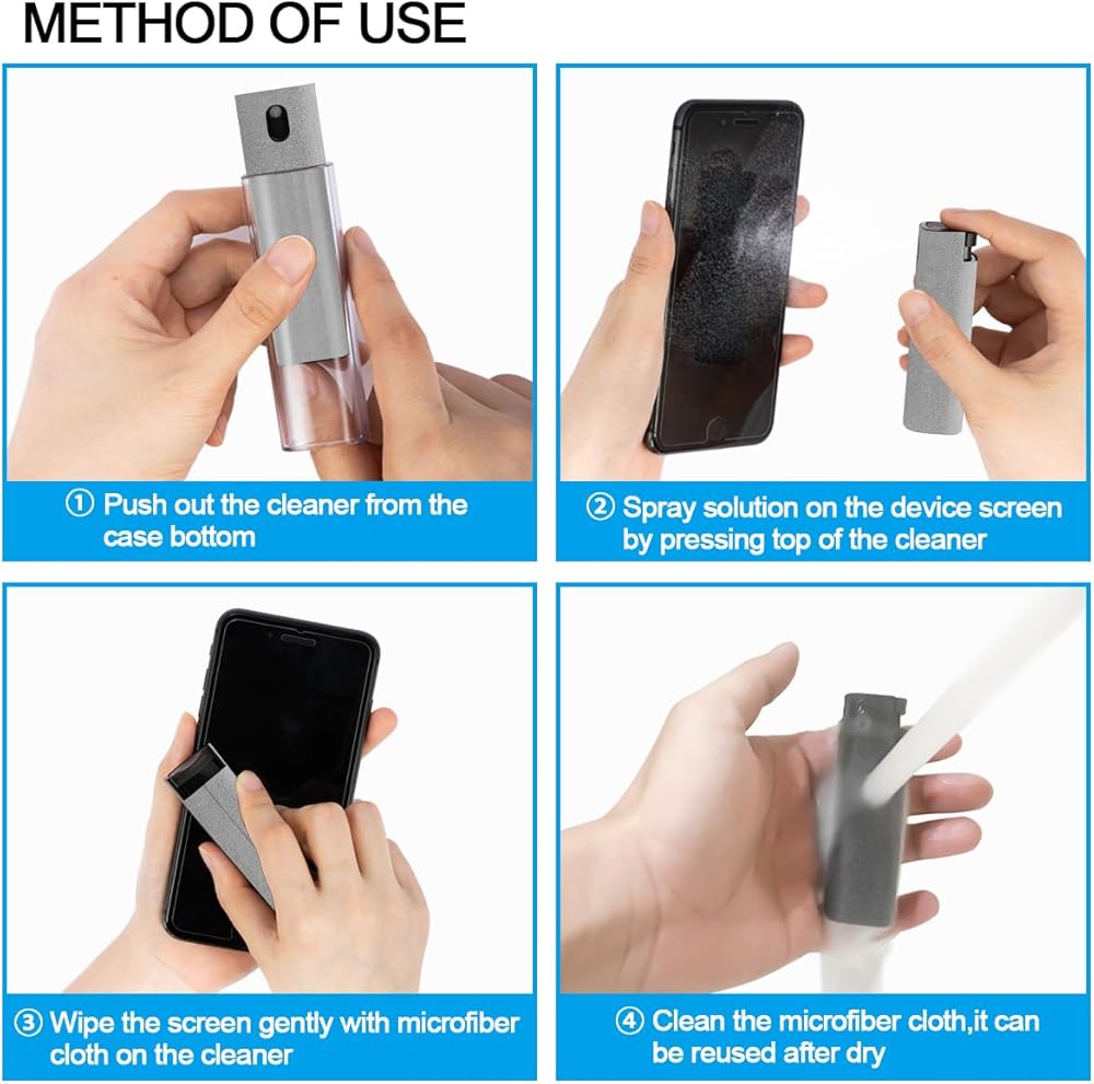 مادة آمنة وسهلة الاستخدام: منظف شاشة متعدد الوظائف لجهاز iPad مصنوع من مادة ABS الواقية الشفافة والألياف الدقيقة. محلول التنظيف مصنوع من الماء النقي منزوع الأيونات والمواد الخافضة للتوتر السطحي، وما إلى ذلك. تخزين رش ومسح مدمج. لا يحتوي على كحول، غير سام وغير ضار، لا يسقط لون الشعر، رذاذ مناديل، مريح وعملي. يرجى إبقائه بعيدًا عن الأطفال.