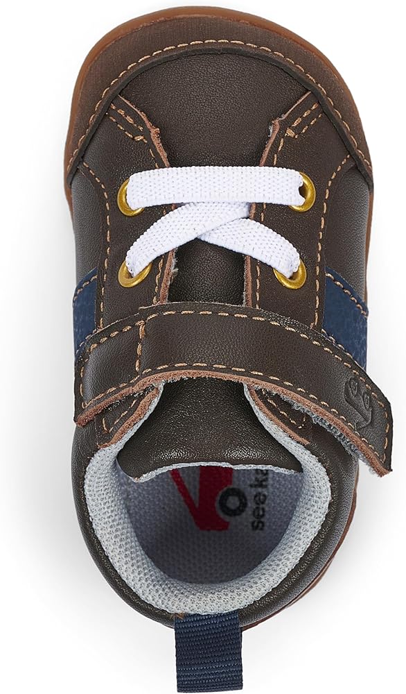 Retro inspired yet right on trend, our Connor court-inspired first walker is ready for fun. Feet stay fresh on the inside and protected on the outside thanks to recycled mesh lining, a rubber toe cap, and flexible, durable outsole.